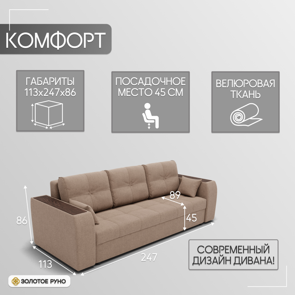 Отзывы о Столплит Прямой диван Сенатор-1 ППУ, велюр бежевый/коричневый