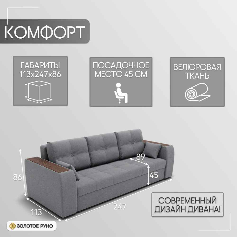 Отзывы о Столплит Прямой диван Сенатор-1 ППУ, велюр Серый