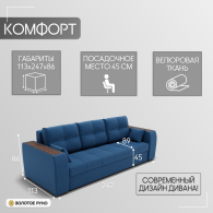 Отзывы о Столплит Прямой диван Сенатор-1 ППУ, велюр Синий