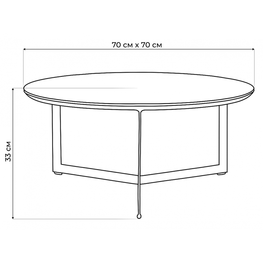 Материал каркаса - Металл; Материал ножек - Металл; Материал столешницы - Стекло; Цвет каркаса - Черный; Цвет ножек - Черный; Цвет столешницы - мрамор; Ширина - 70; Высота - 33; Длина - 70. Толщина стекла на столешнице - 4мм