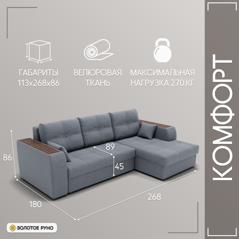 Отзывы о Столплит Угловой диван Сенатор-3 ППУ, велюр Серо-голубой