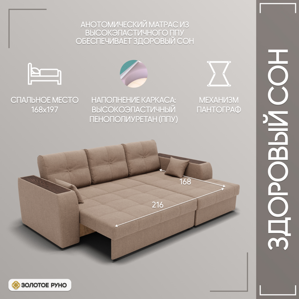 Отзывы о Столплит Угловой диван Сенатор-3 ППУ, велюр бежевый/коричневый