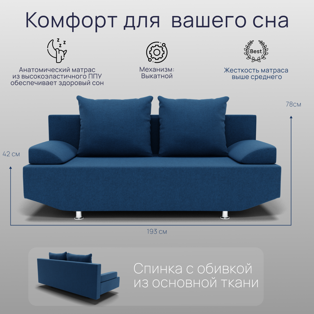 Отзывы о Столплит Прямой диван Сити ППУ, велюр Синий