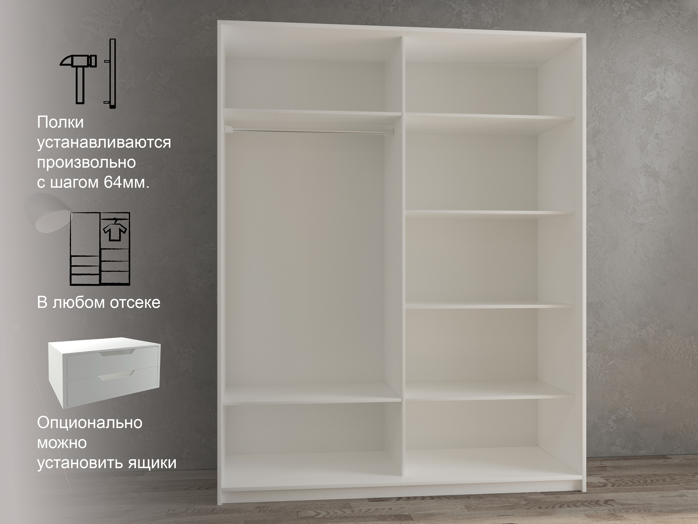 Шкаф-купе 2х дверный Кааппи 11 140х60 (Белый)