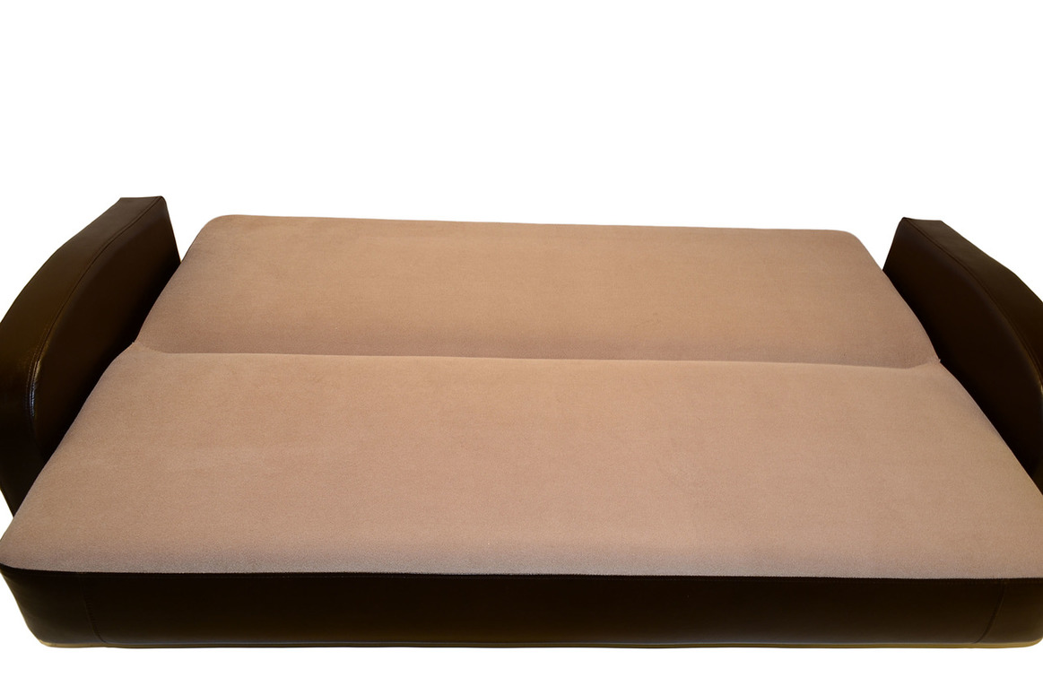 Превосходная модель мягкой мебели, которая легко станет дизайнерской изюминкой гостиной, спальни или дачи. Эта привлекательная модель изготовлена из ДСП, высококачественной фанеры и бруса хвойных пород по лучшим технологиям изготовления мебели. Также диван-кровать  дополнен  ящиком для белья. Наполнителем является ППУ. Мягкая мебель имеет удобный механизм трансформации «Книжка», справиться с, которым может даже ребенок.