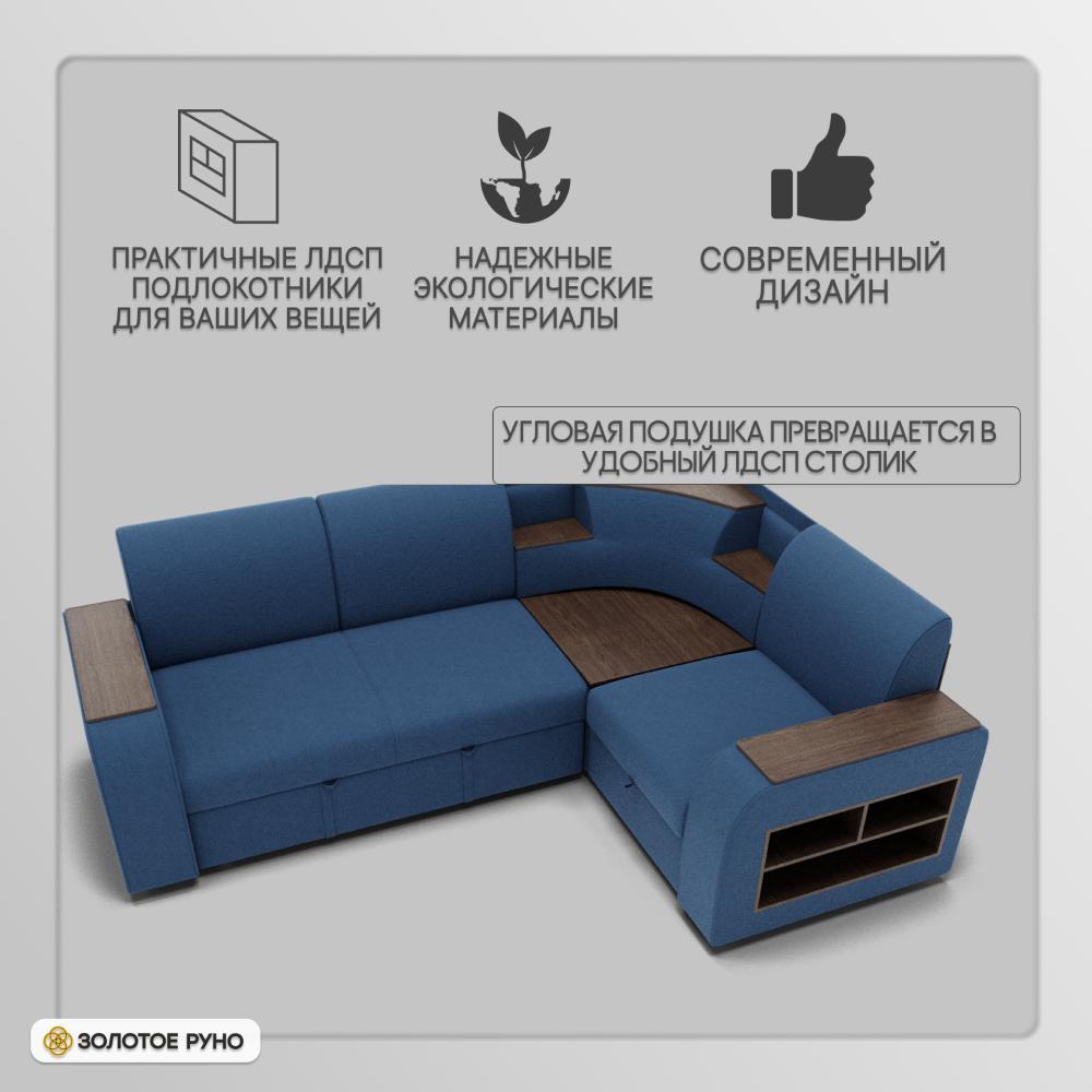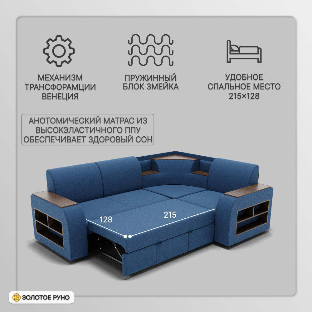 Отзывы о Столплит Угловой диван Фараон ППУ, велюр Синий