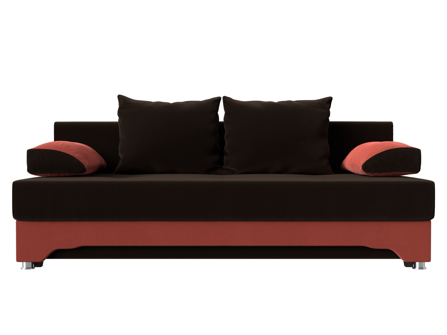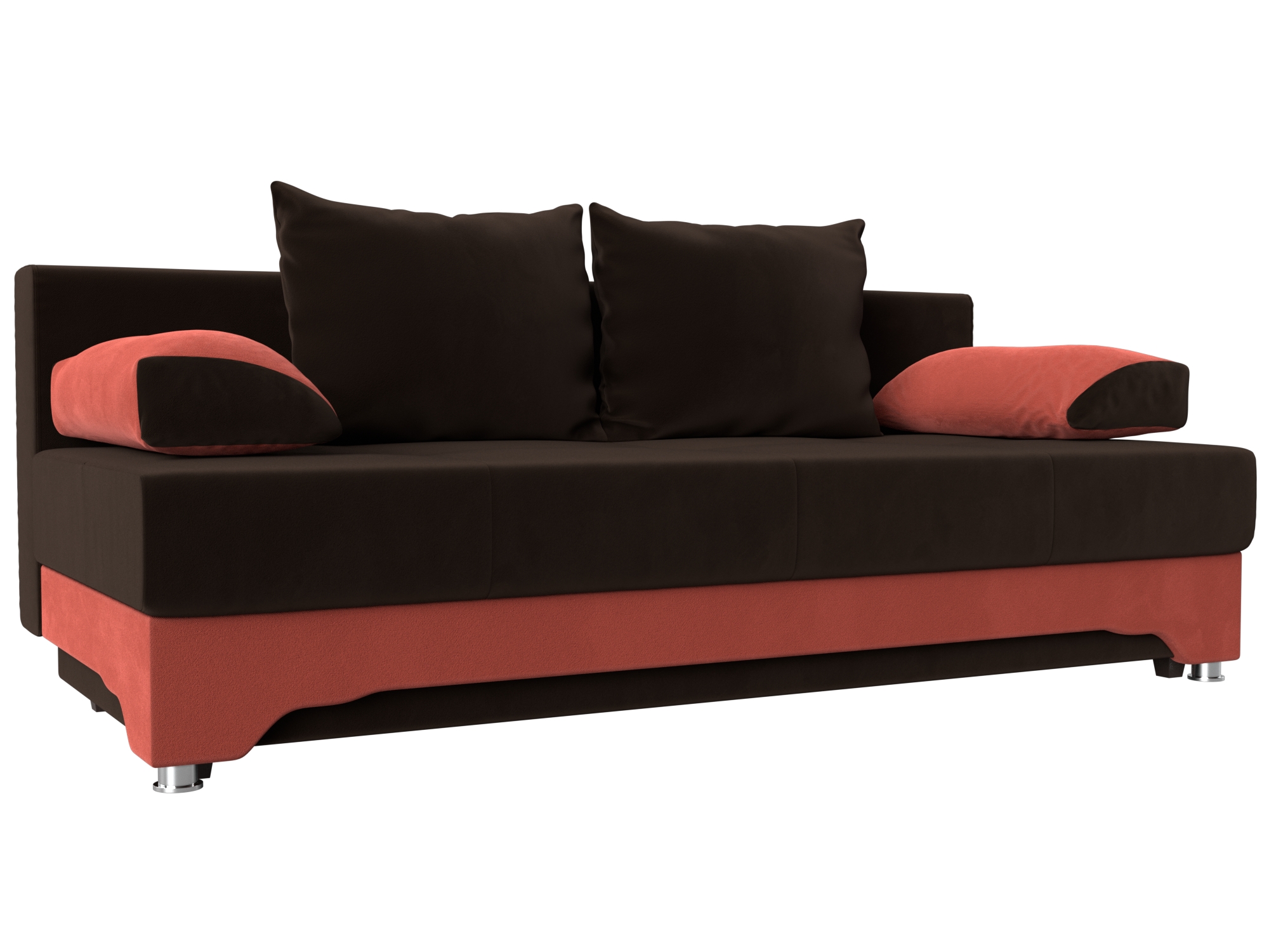 Отзывы о Столплит Диван прямой Ник-2, микровельвет Коричневый/Коралловый