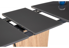 Толщина столешницы: 26 мм. Материал каркаса - ЛДСП / металл; Материал ножек - ЛДСП / металл; Материал столешницы - Стекло; Цвет каркаса - Дуб антор натуральный; Цвет ножек - Дуб антор натуральный; Цвет столешницы - Графит; Ширина - 80; Высота - 76; Длина стола в разложенном виде - 180; Длина - 140.