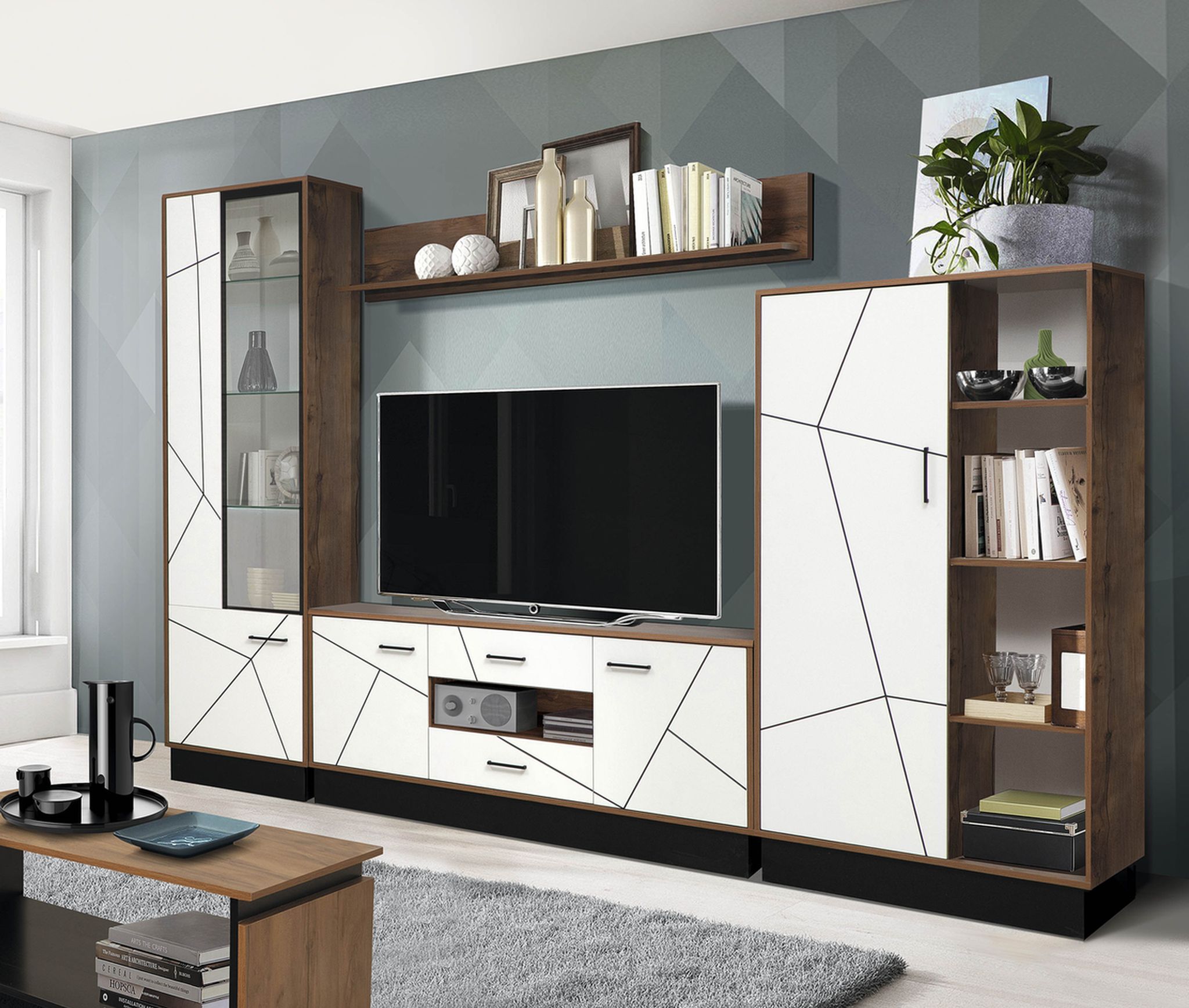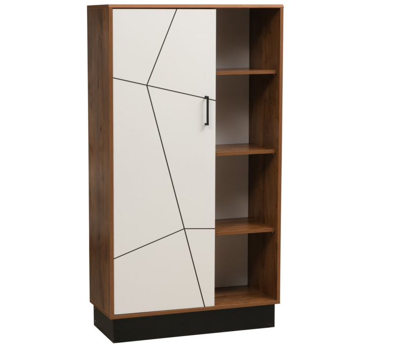 Распашной 1 дверный шкаф-стеллаж из серии Гамма с открытыми и закрытыми полками.