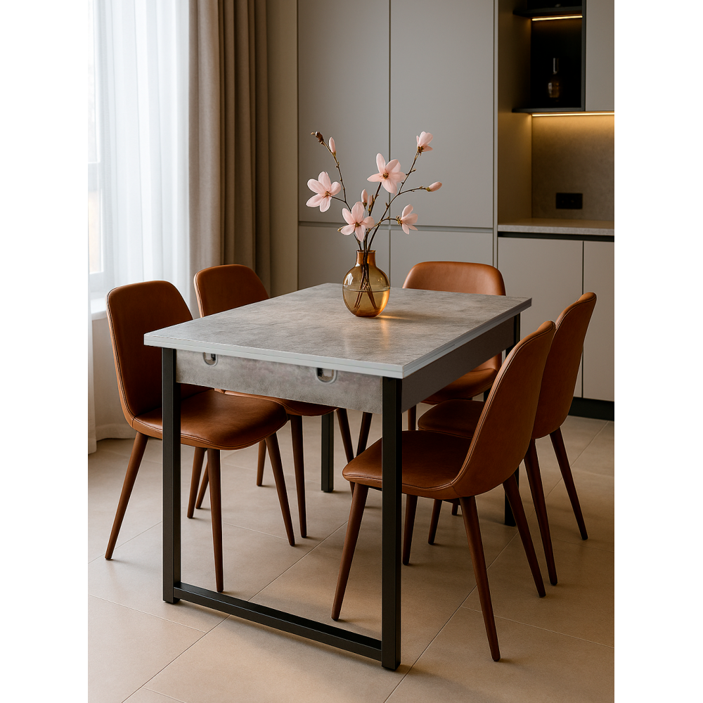 Толщина столешницы: 16 мм. Материал каркаса - Металл; Материал ножек - Металл; Материал столешницы - МДФ / шпон; Материал подстолья - МДФ / шпон; Цвет каркаса - Черный; Цвет ножек - Черный; Ширина - 67; Высота - 77; Длина стола в разложенном виде - 150; Длина - 90.