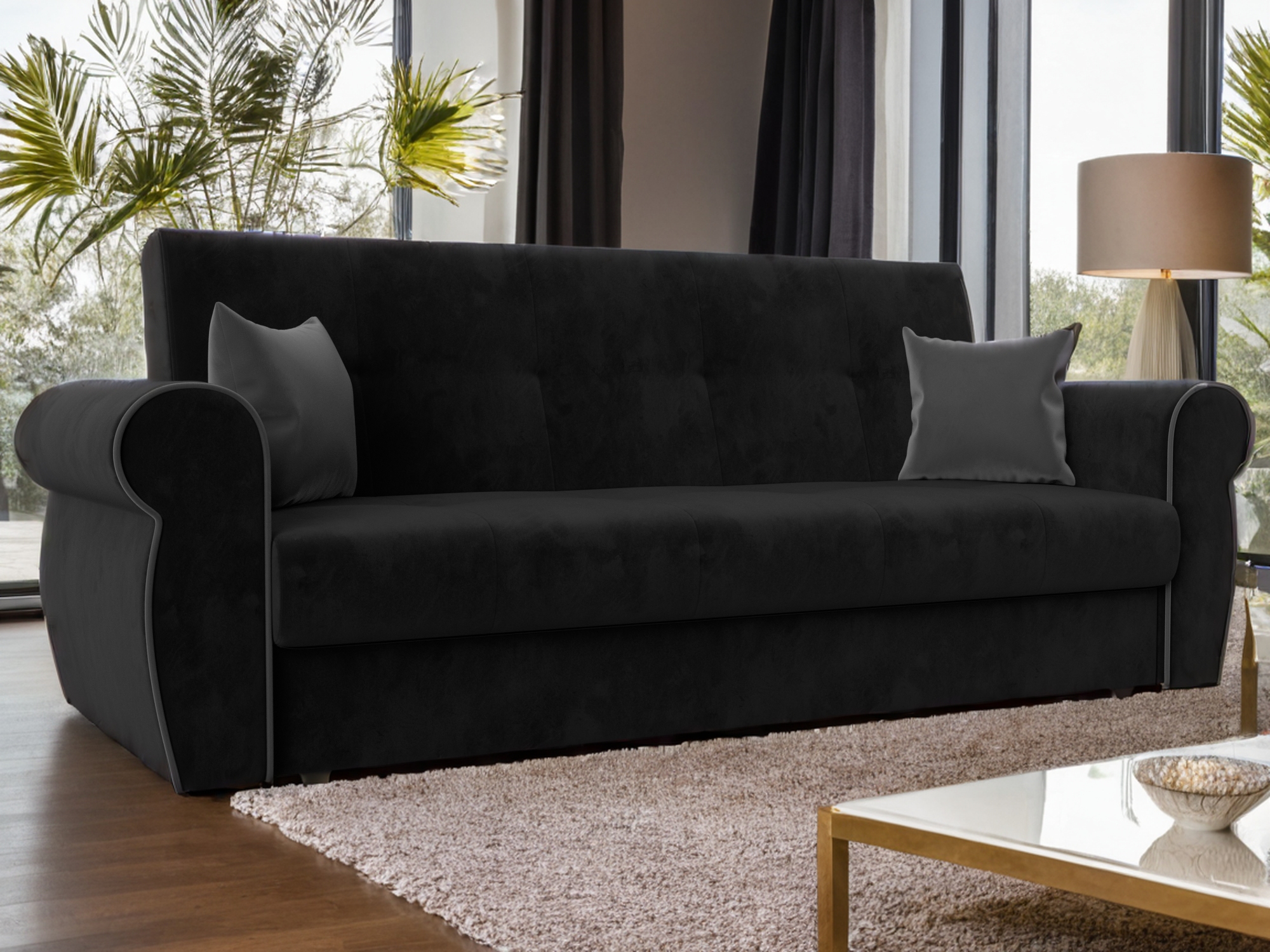 Отзывы о Столплит Диван-книжка Лига-019, велюр Черный/Серый