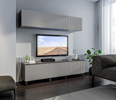В данной гостиной предусмотрен механизм Push To Open, который подразумевает легкое открытие от нажатия.