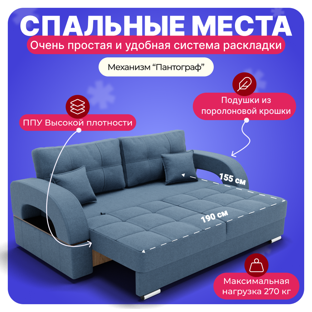 Современный и комфортабельный диван для вашего дома. Отлично подойдёт к любому интерьеру. Из-за своих размеров подходит для небольших квартир и комнат.
