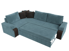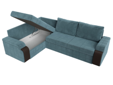 Механизм: дельфин. Он конструктивно сложен. Состоит из направляющих, металлических кронштейнов и роликов. Разложить угловой диван можно потянув за скрытую петлю. Нижний короб выдвигается вперед, спальный блок поднимается.