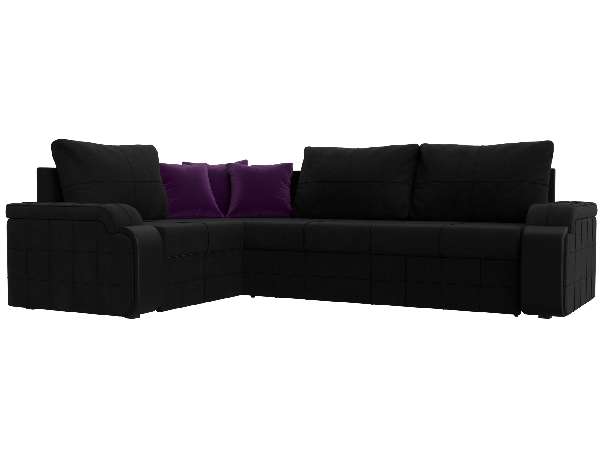 Отзывы о Столплит Диван угловой Николь левый угол, микровельвет / экокожа Черный/Фиолетовый