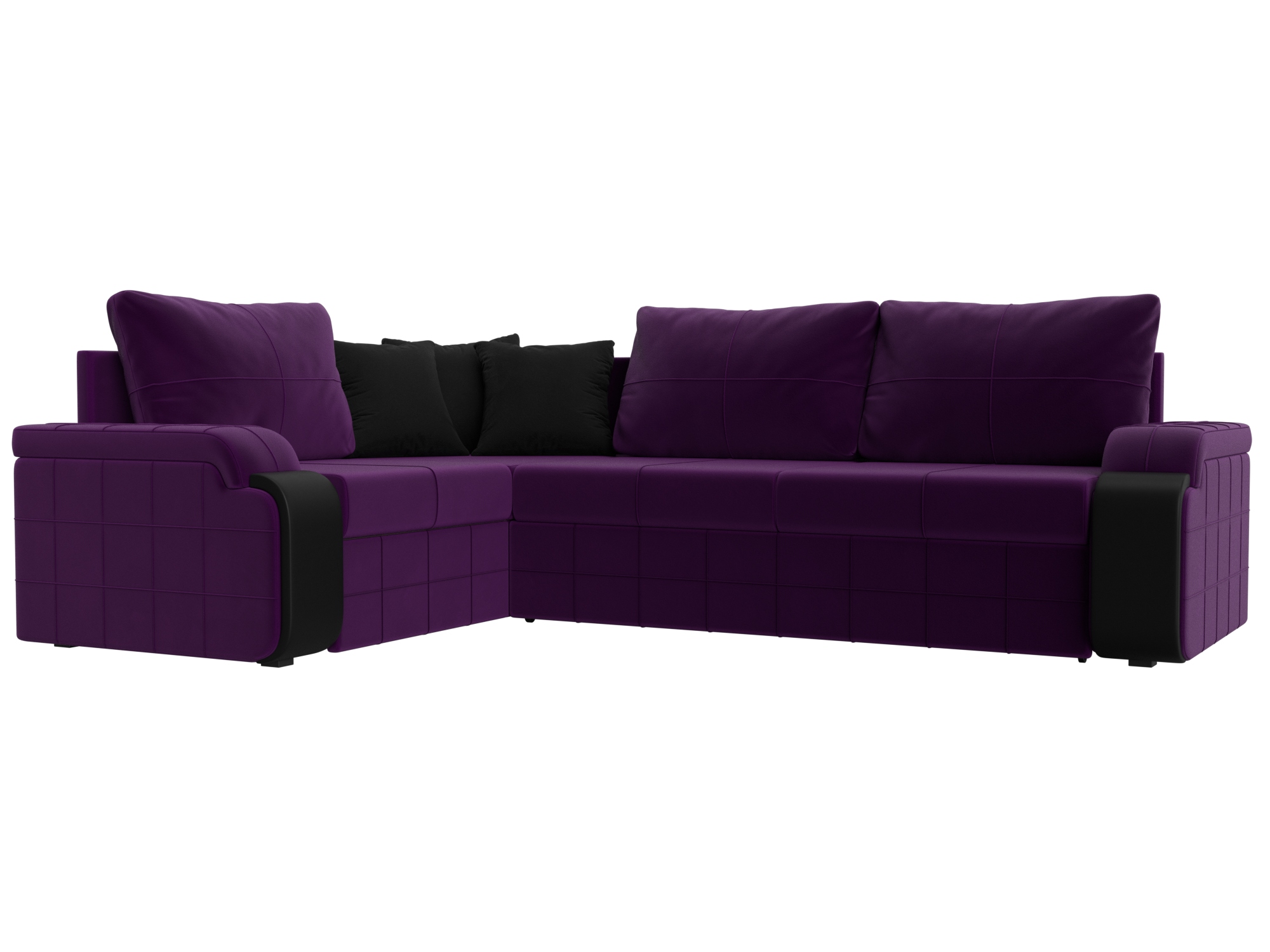 Отзывы о Столплит Диван угловой Николь левый угол, микровельвет / экокожа Фиолетовый/Черный