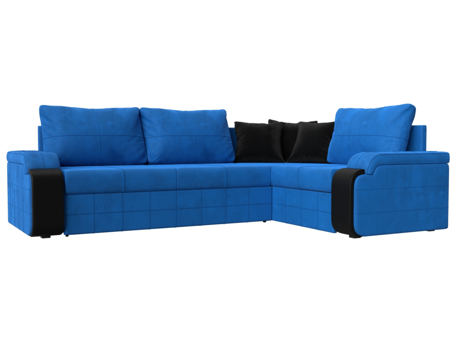 Диван угловой Николь правый угол, велюр / экокожа (Голубой/Черный) Код I0000357719