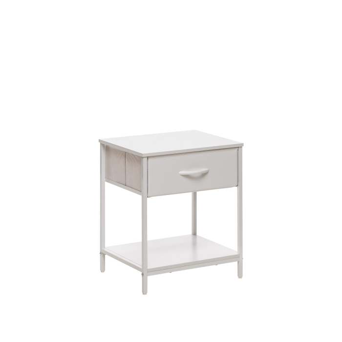 Тумбочка имеет один вместительный выдвижной ящик и открытую полку для мелочей. Стильная тумба получила стальной каркас и надежные пластиковые ножки, которые сберегут пол. Ящик – экокожа с деревянной ручкой и нетканный материал – спанбонд.