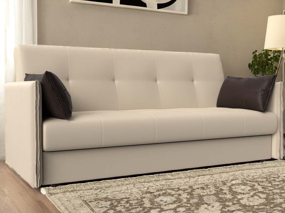 Если вы ищите недорогой, надежный, удобный и простой в эксплуатации диван со спальным местом, то «Лига-018» — это Ваш вариант. Современная модель с механизмом раскладки «книжка» гармонично впишется в интерьер как жилых комнат, так и строгих офисов. Мягкие узкие подлокотники придают дивану изысканный вид, а две декоративные подушки обеспечат удобство и комфорт. Под сиденьем расположена вместительная ниша для белья размером 178х69х19 см. Конструкция дивана-книжки функциональна, легко трансформируется в кровать. «Лига-018» станет выгодным приобретением для вашего дома и неотделимым элементом интерьера.