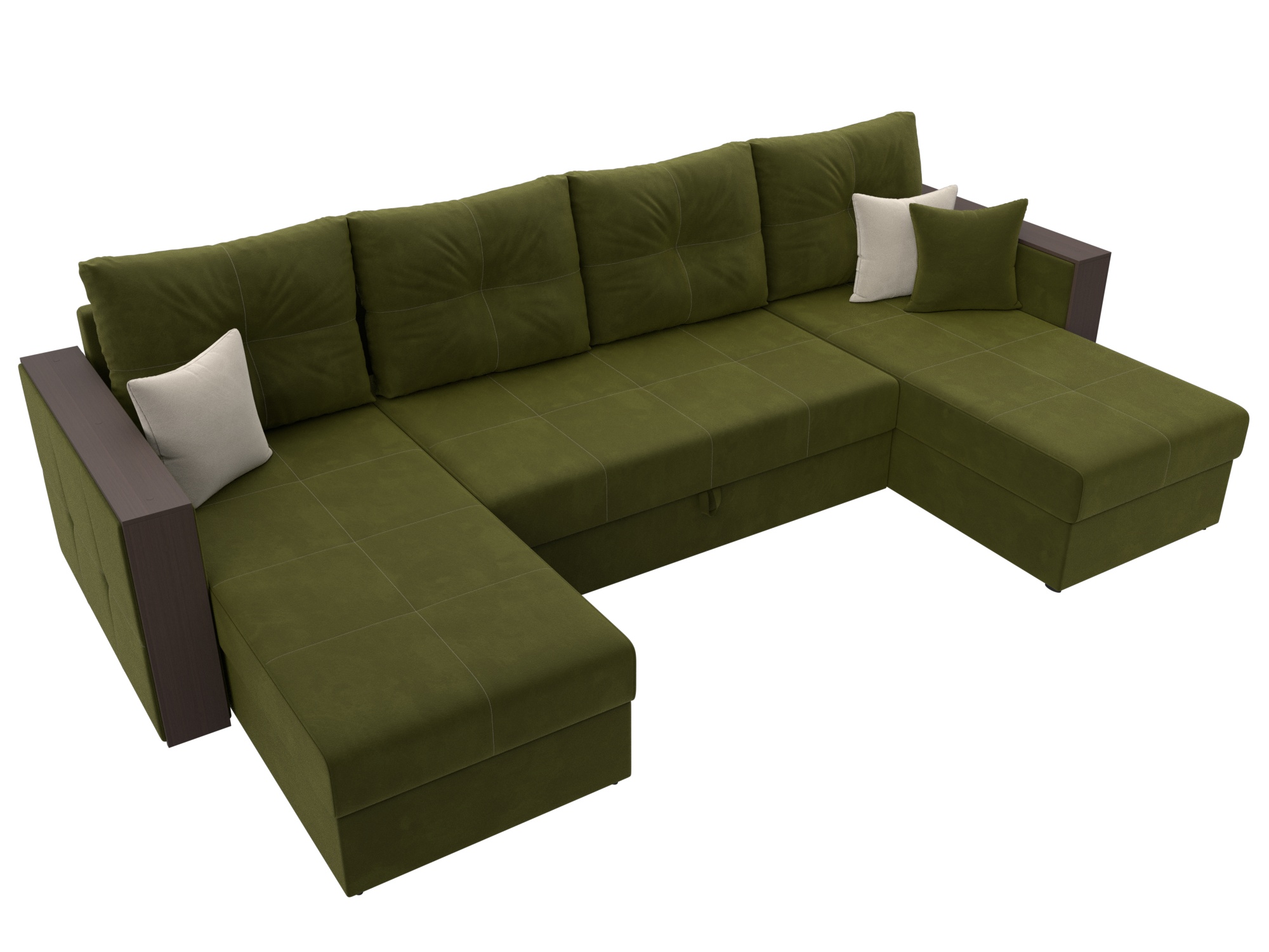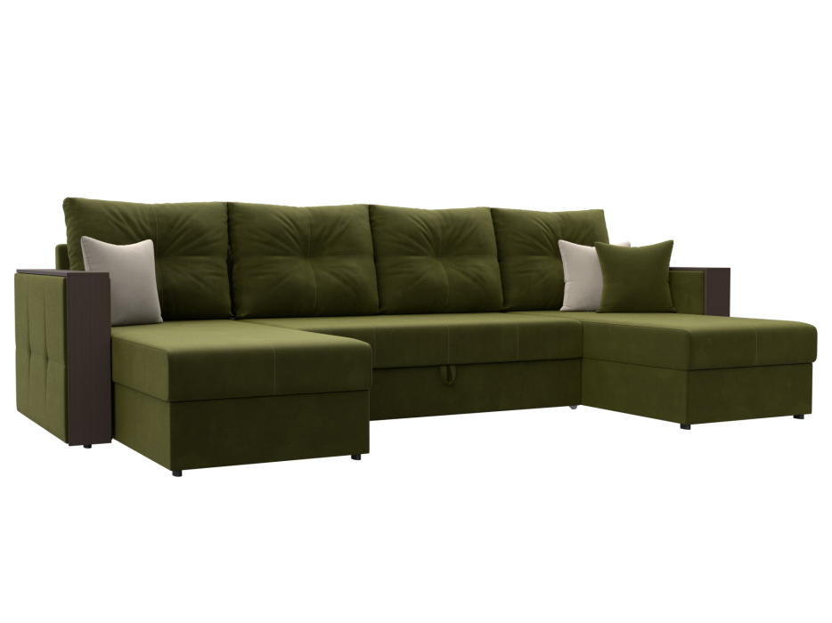 Отзывы о Столплит П-образный диван Валенсия, микровельвет Зеленый/Бежевый