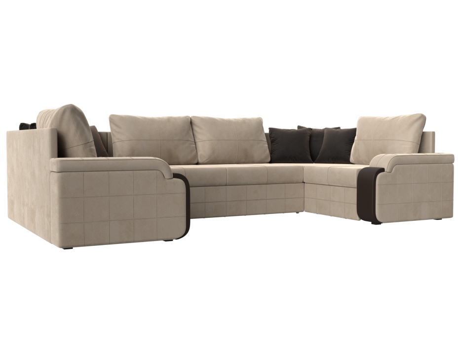 Отзывы о Столплит П-образный диван Николь, велюр / экокожа Бежевый/ Коричневый
