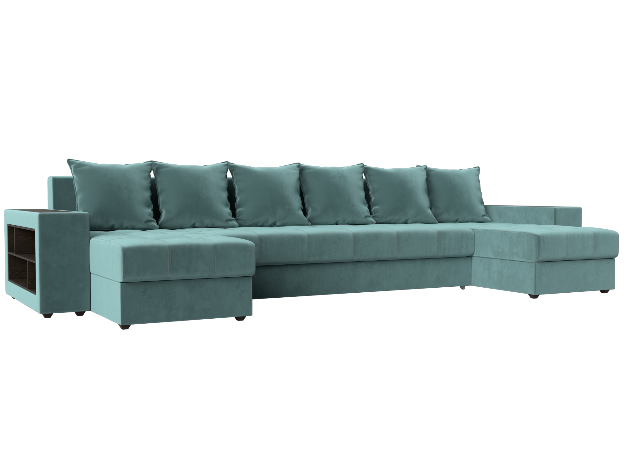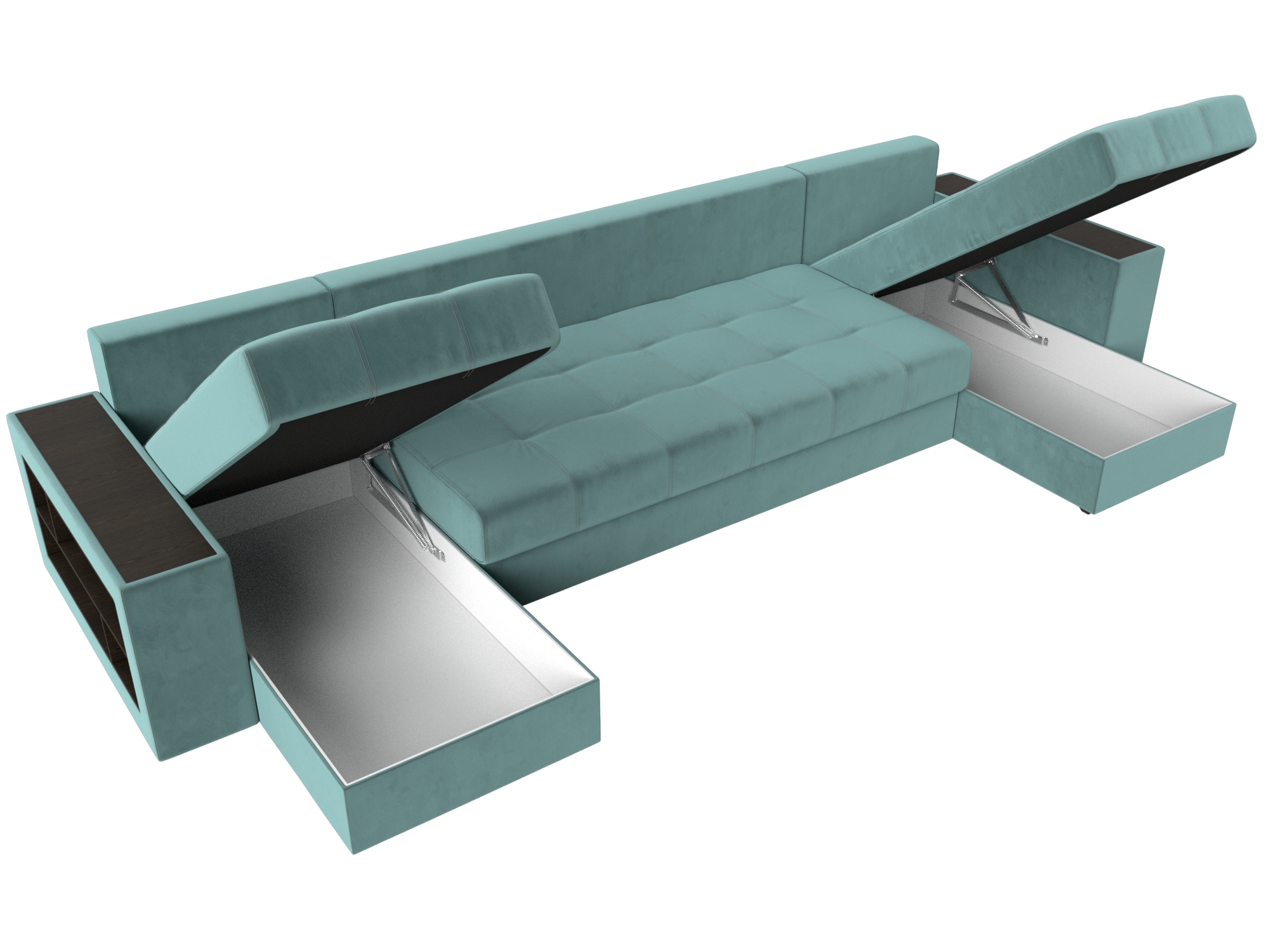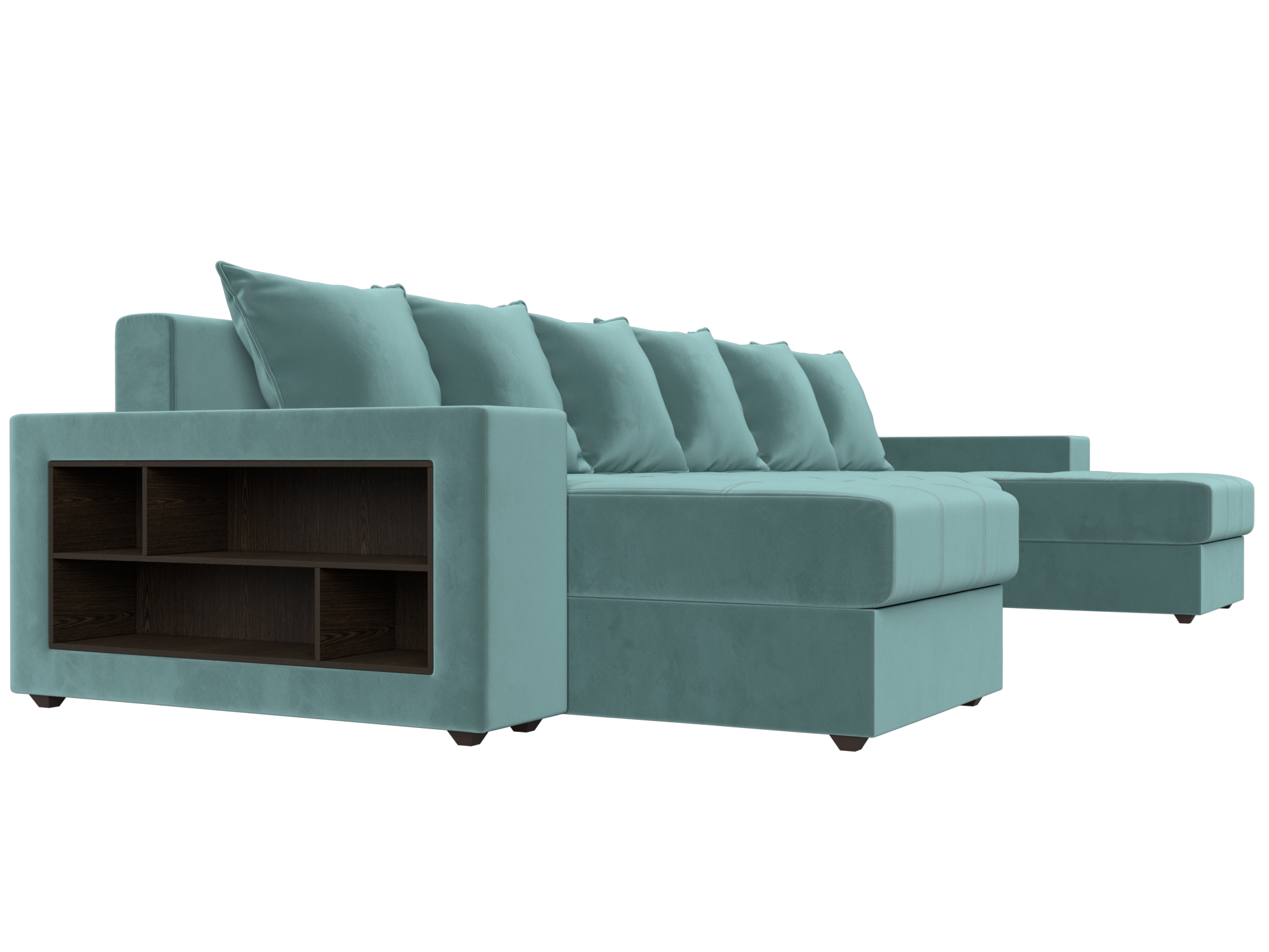 П-образный диван Дубай полки слева, велюр (Бирюзовый) Код I0000358836