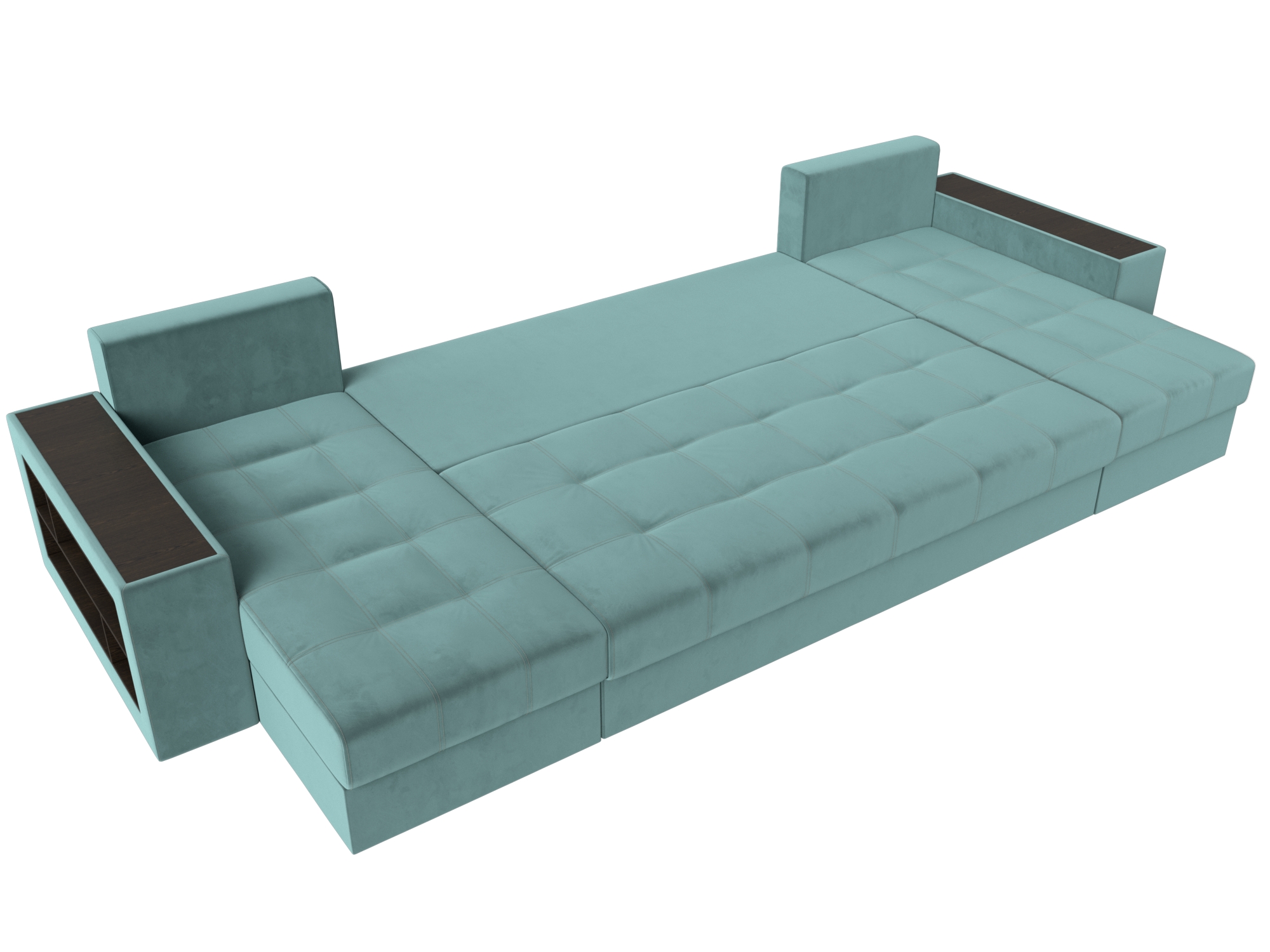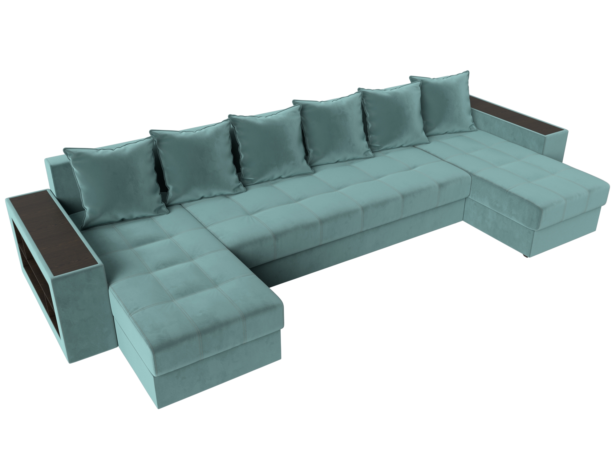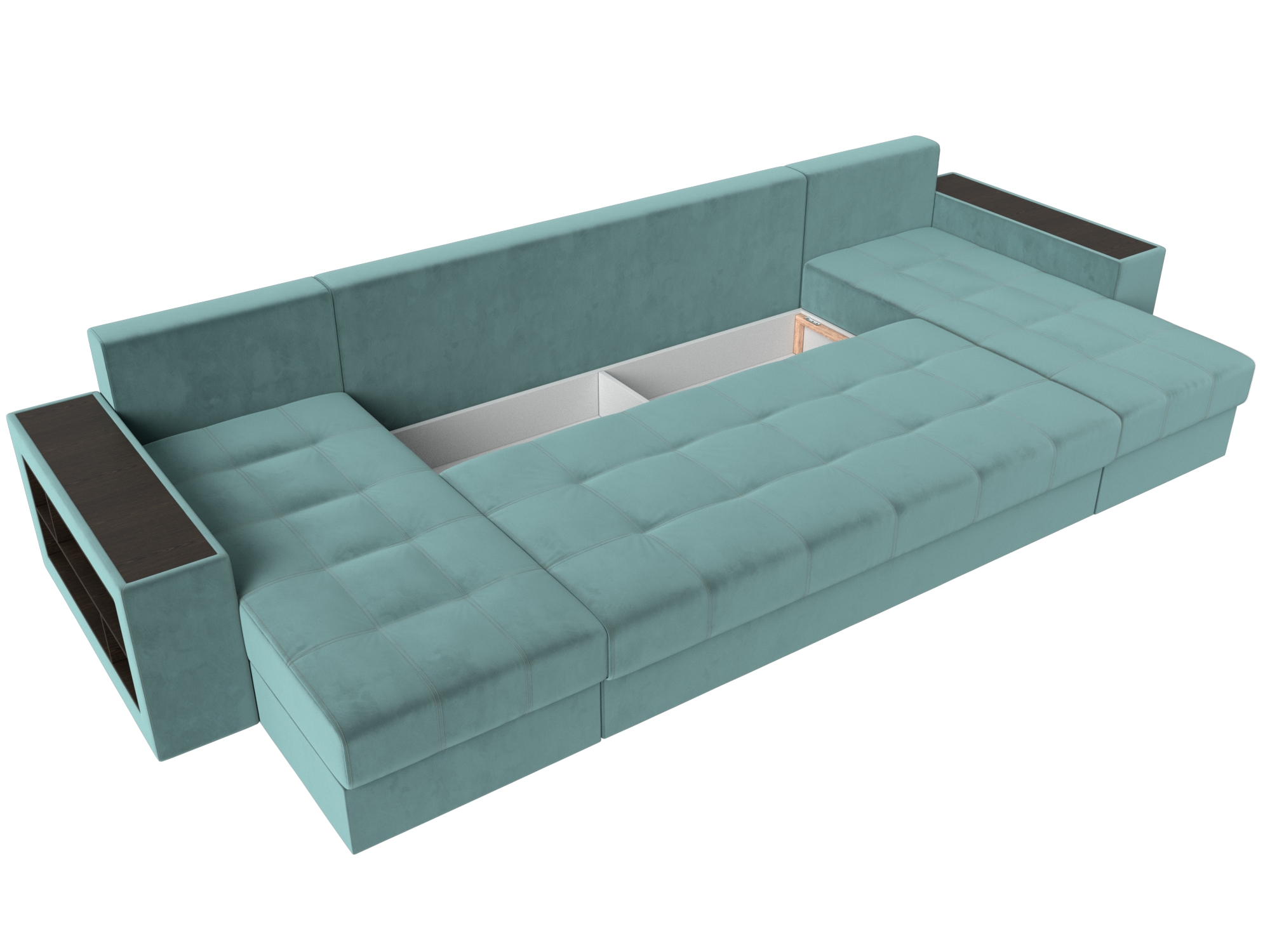 П-образный диван Дубай полки слева, велюр (Бирюзовый) Код I0000358836