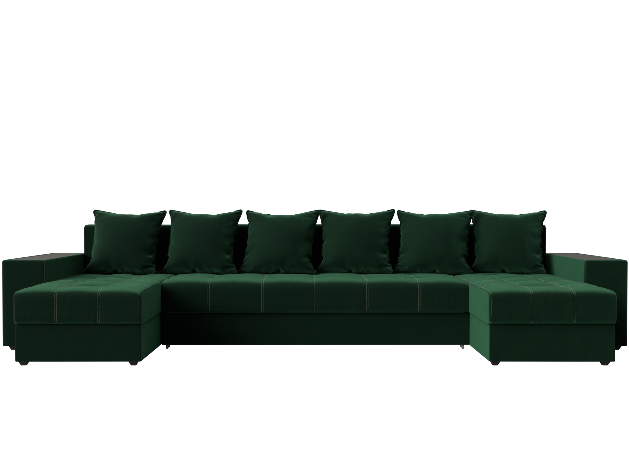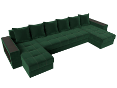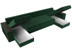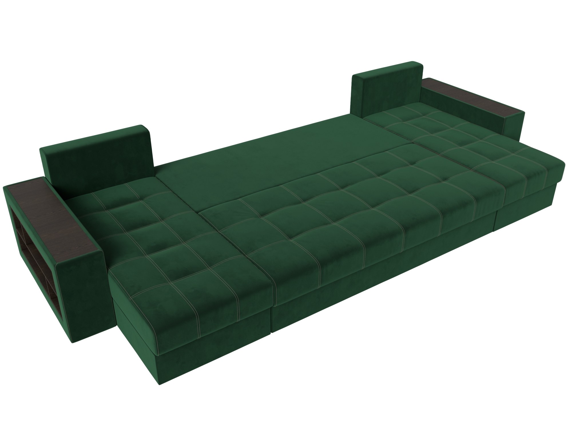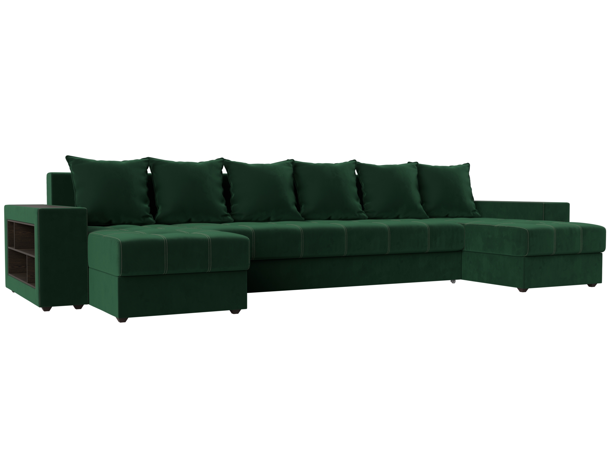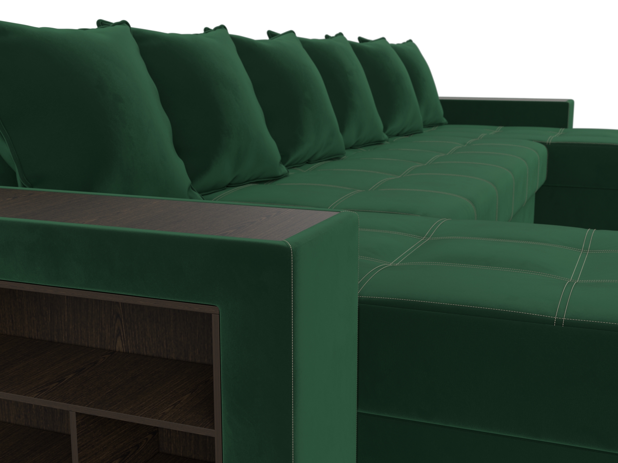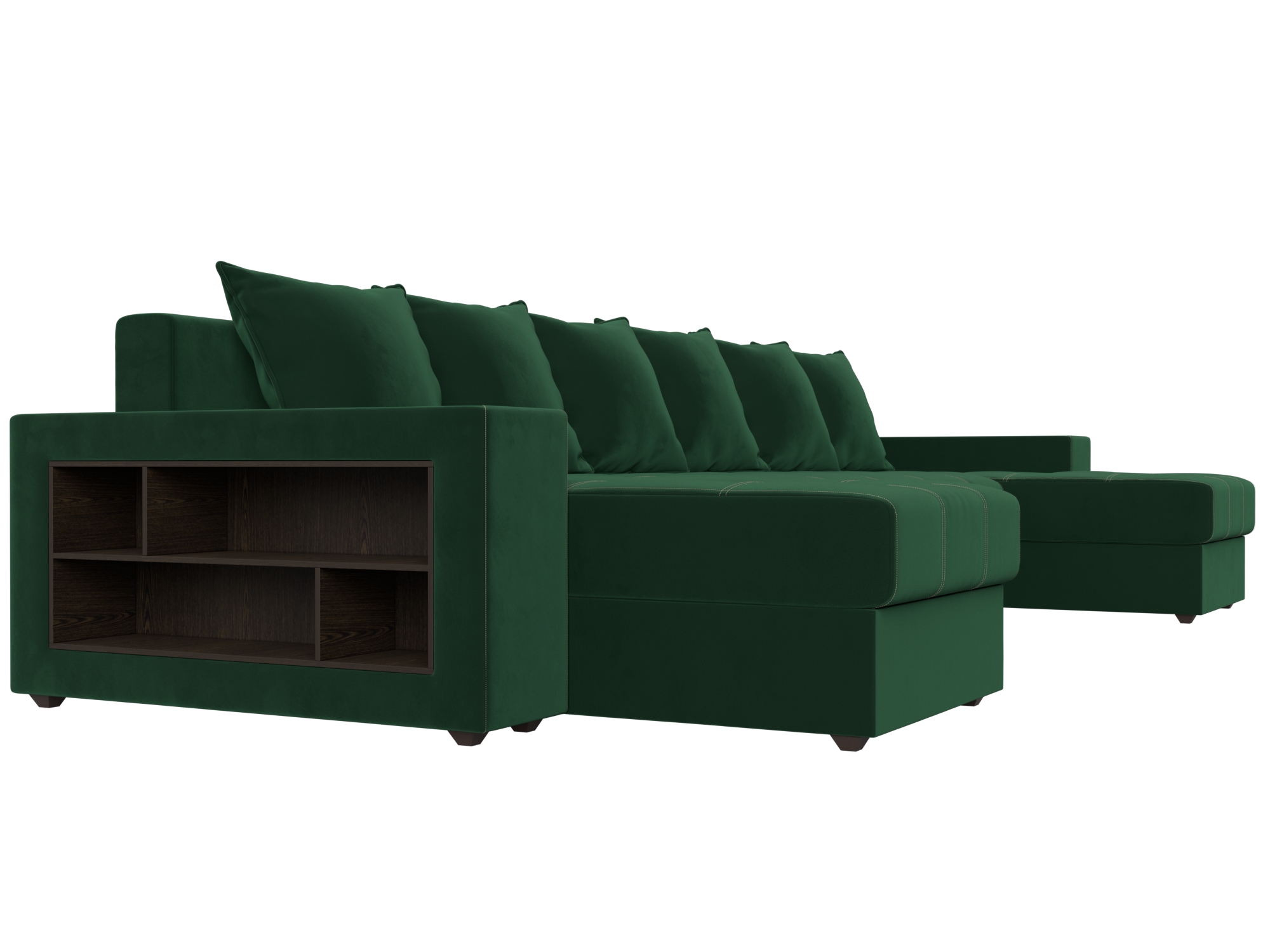 П-образный диван Дубай полки слева, велюр (Зеленый) Код I0000358838
