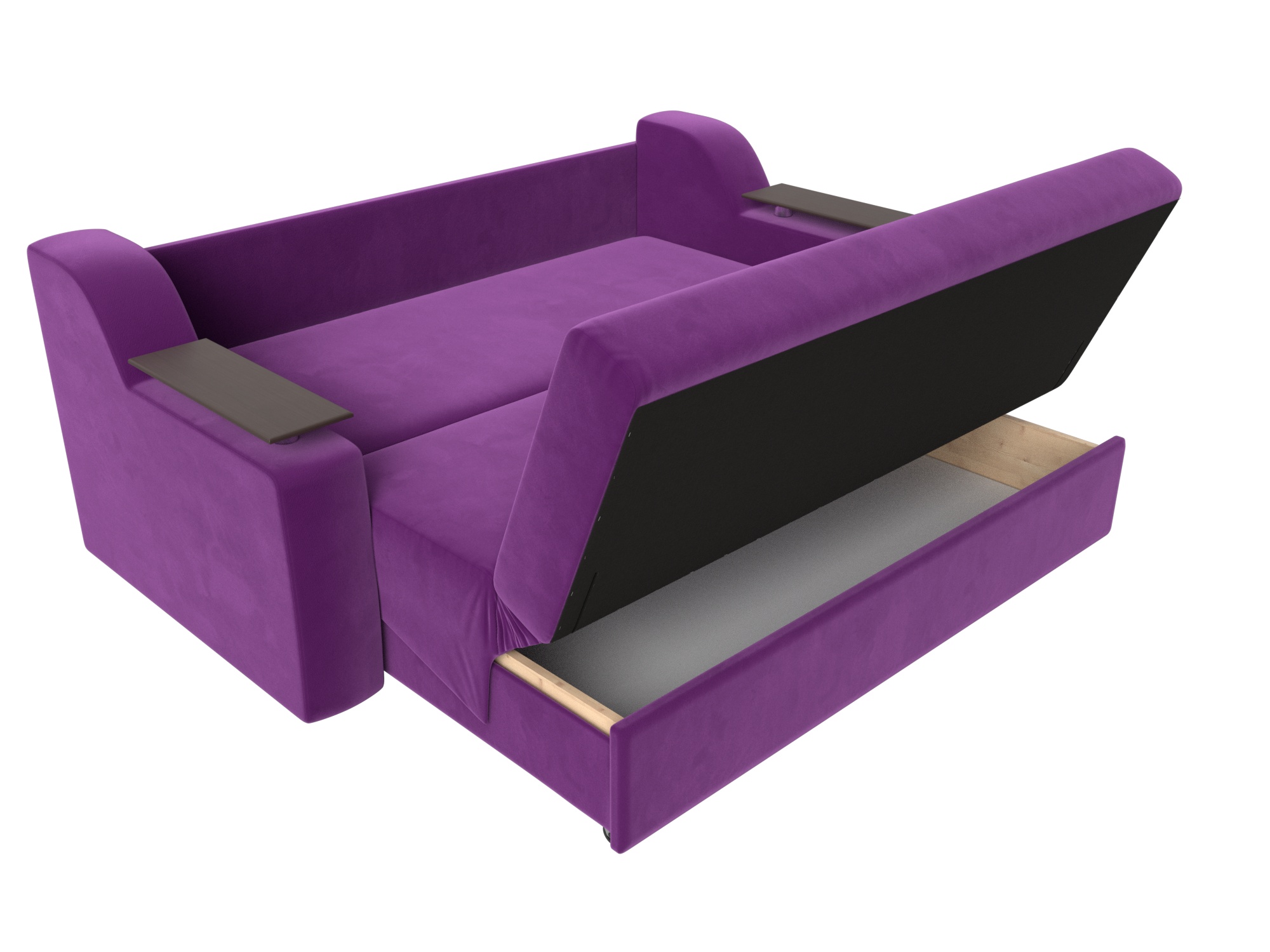 Сенатор – элегантный прямой диван аккордеон с ящиком для хранения белья. Изделие с легкостью раскладывается в комфортабельную двуспальную кровать. Высокая спинка, подлокотники дополнены деревянными столешницами, выполняющими функцию мини-столиков.