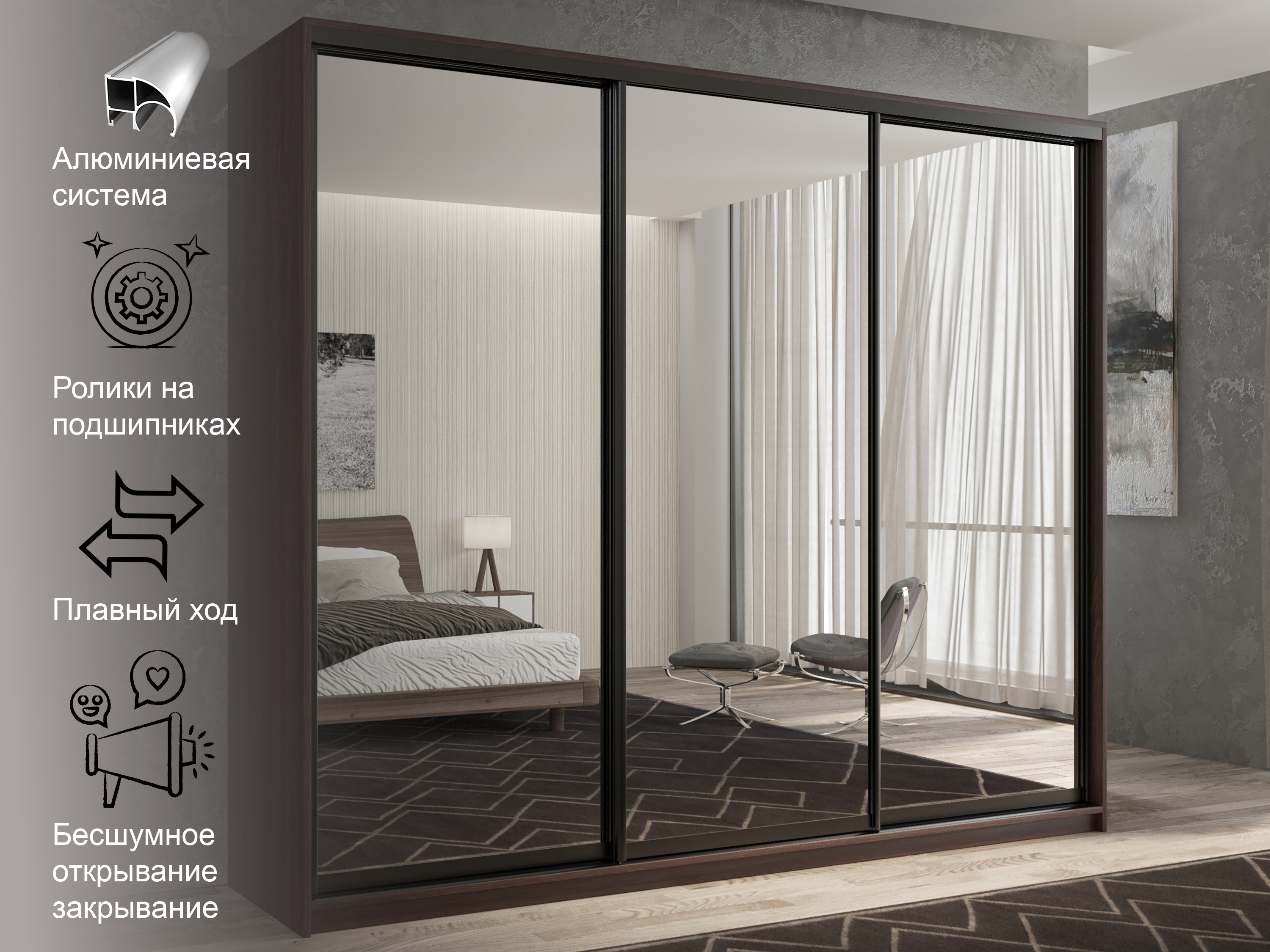 Отзывы о Столплит Шкаф-купе 3х дверный Кааппи 1 180х45 Венге