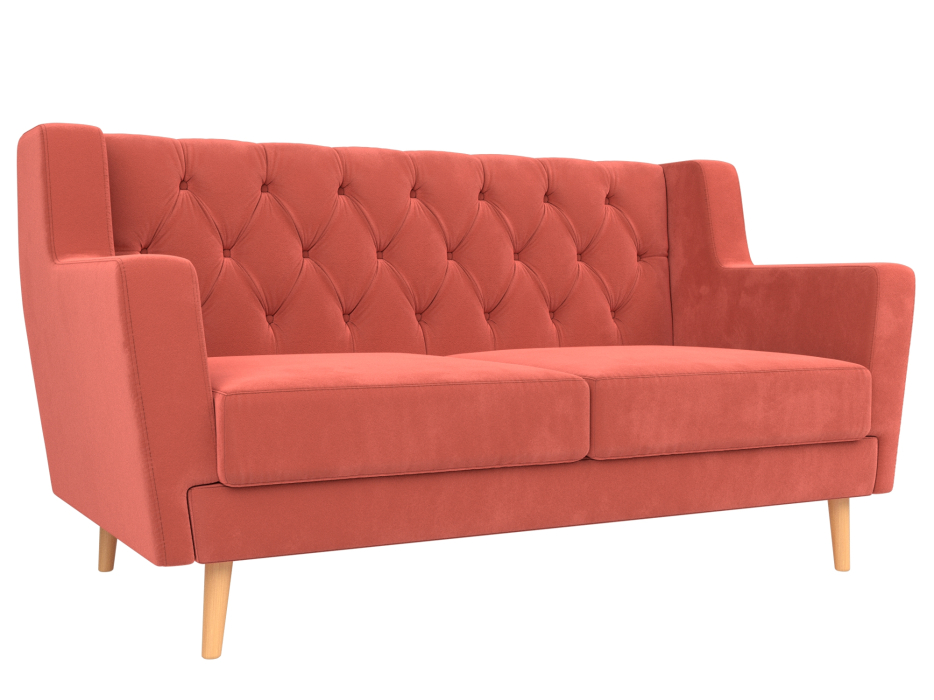 Прямой диван Брайтон 2 Люкс, микровельвет (Коралловый) Код I0000359409