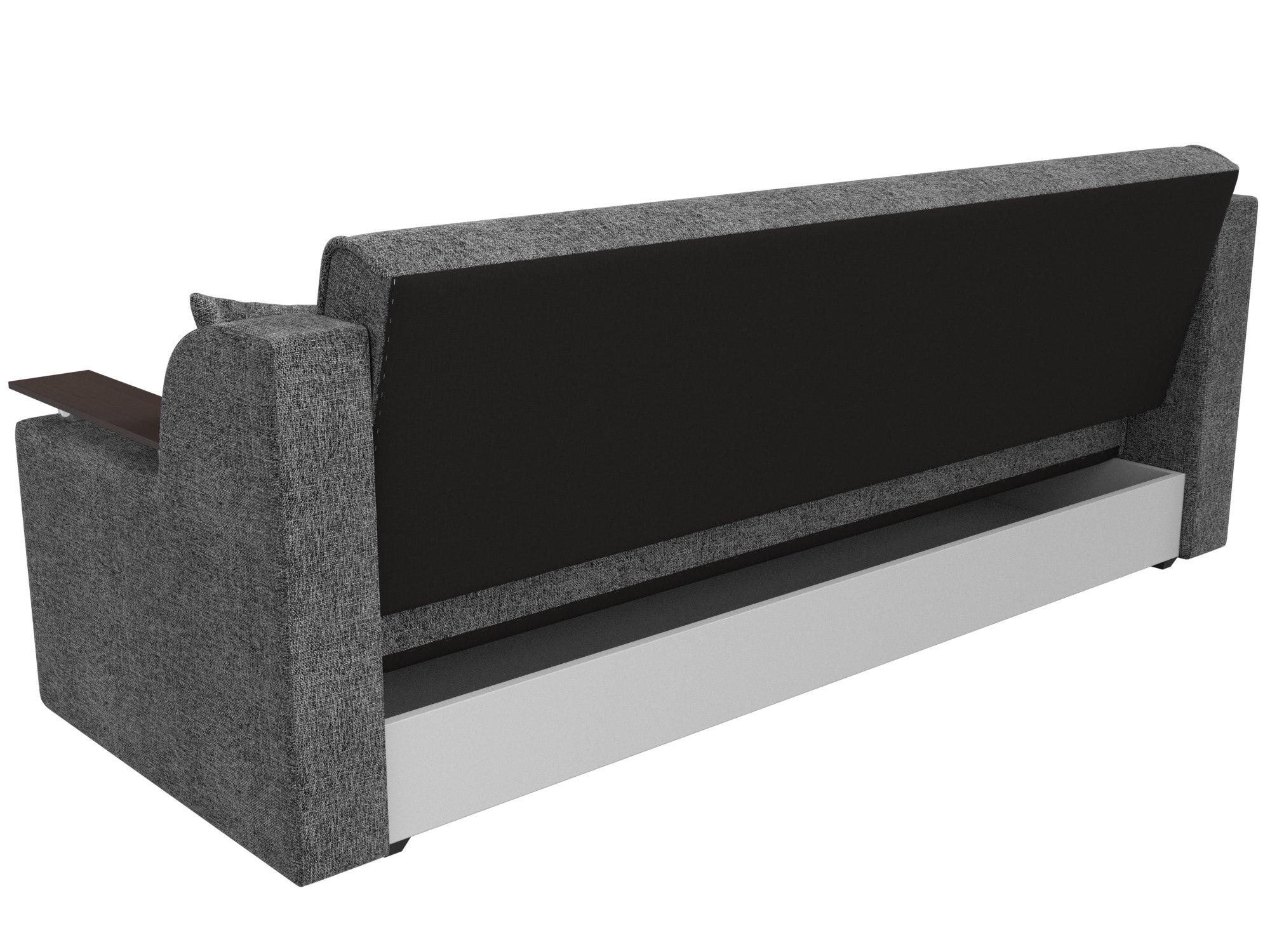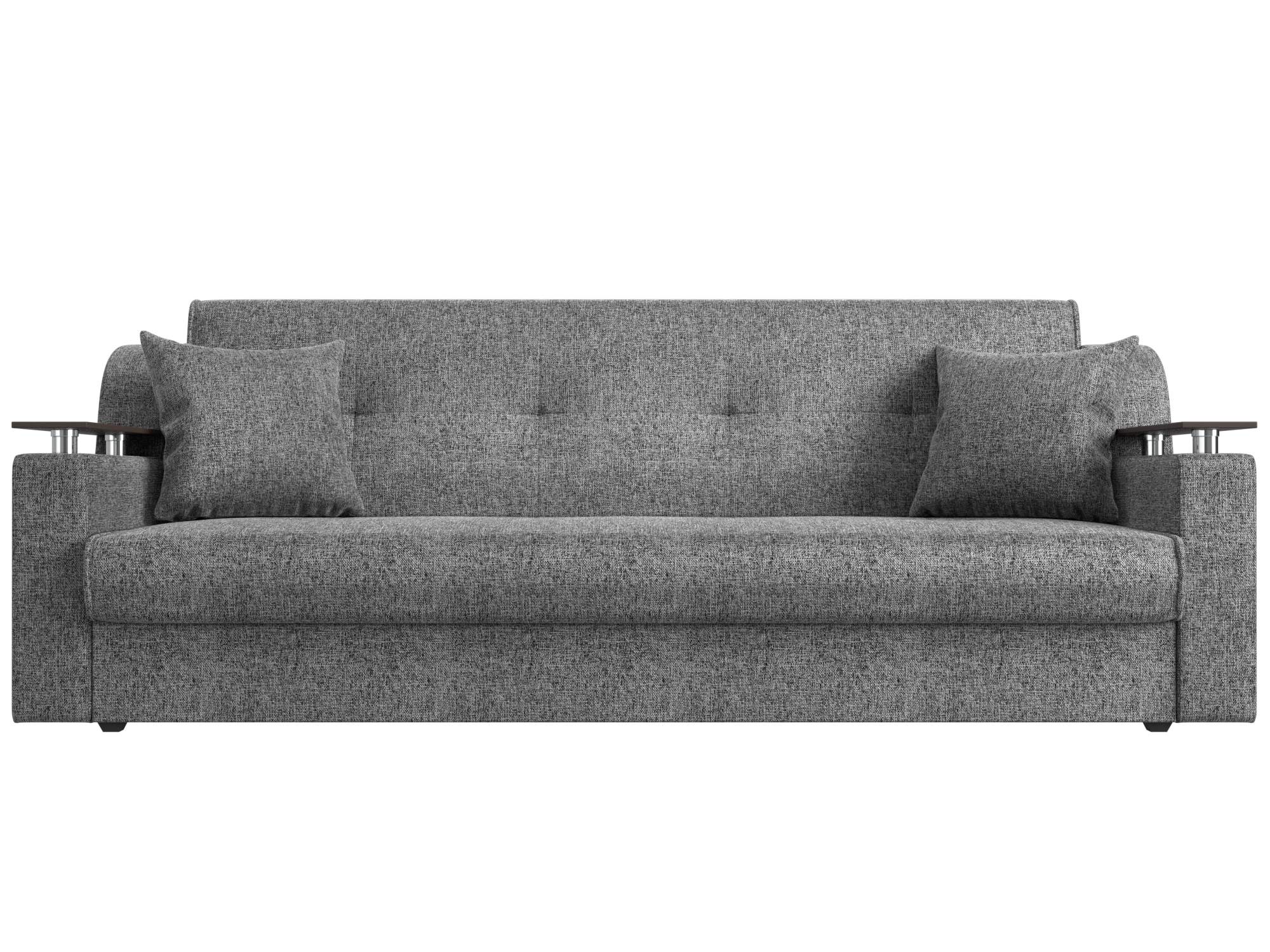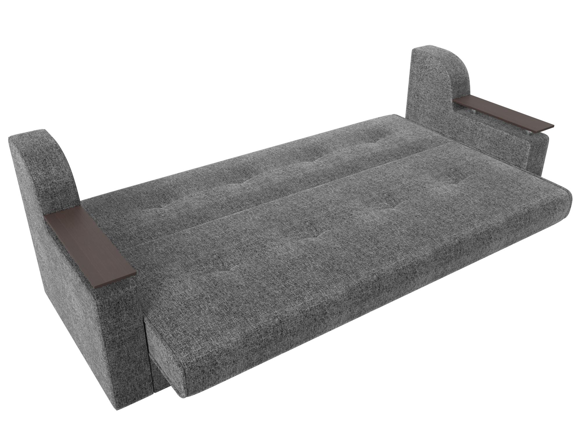 Сенатор – мягкий прямой диван с эргономичной спинкой и мини-столиками по бокам. Он устойчиво стоит на 4 пластиковых ножках, идеально гармонирующих с общим дизайном. Спинка прямая, без съемных подушек, подлокотники деревянные, выполняют роль столиков. Классический механизм «книжка» позволяет быстро трансформировать его в удобную двуспальную кровать.