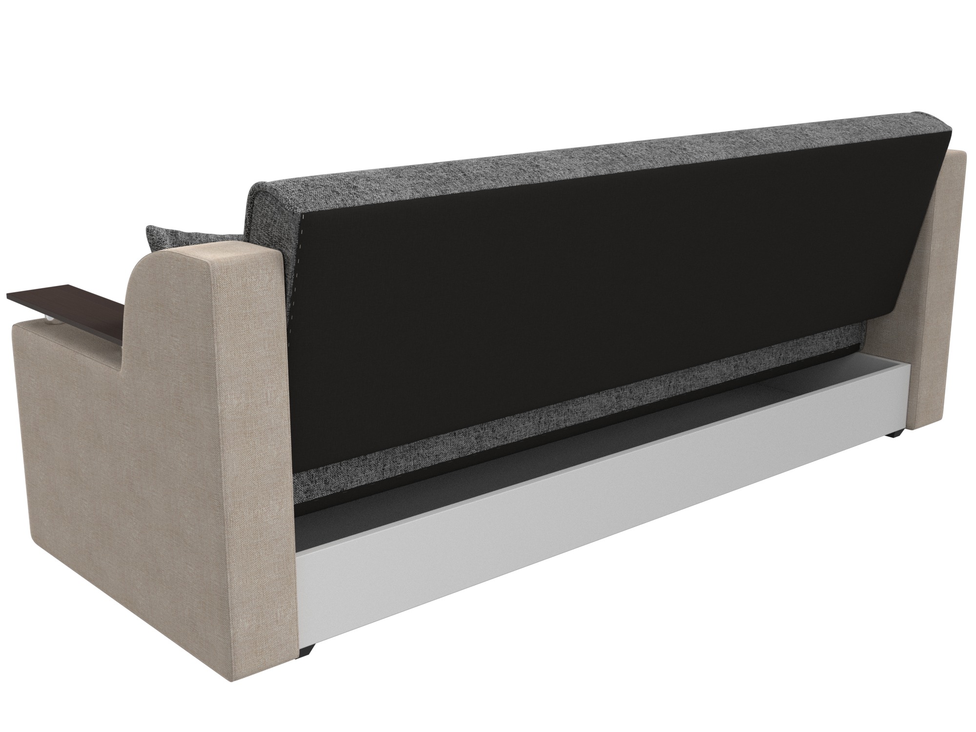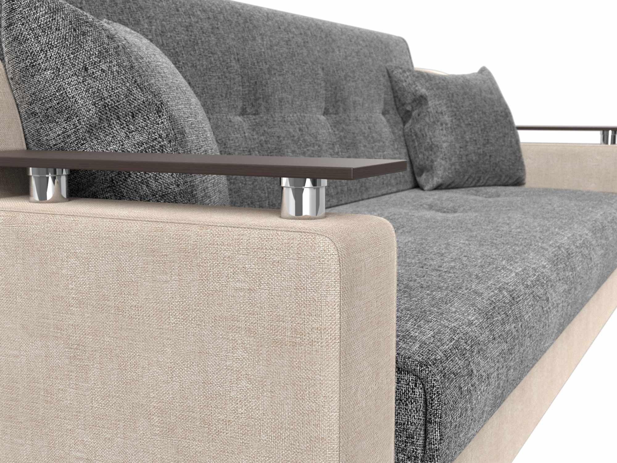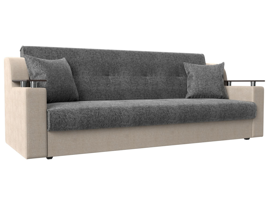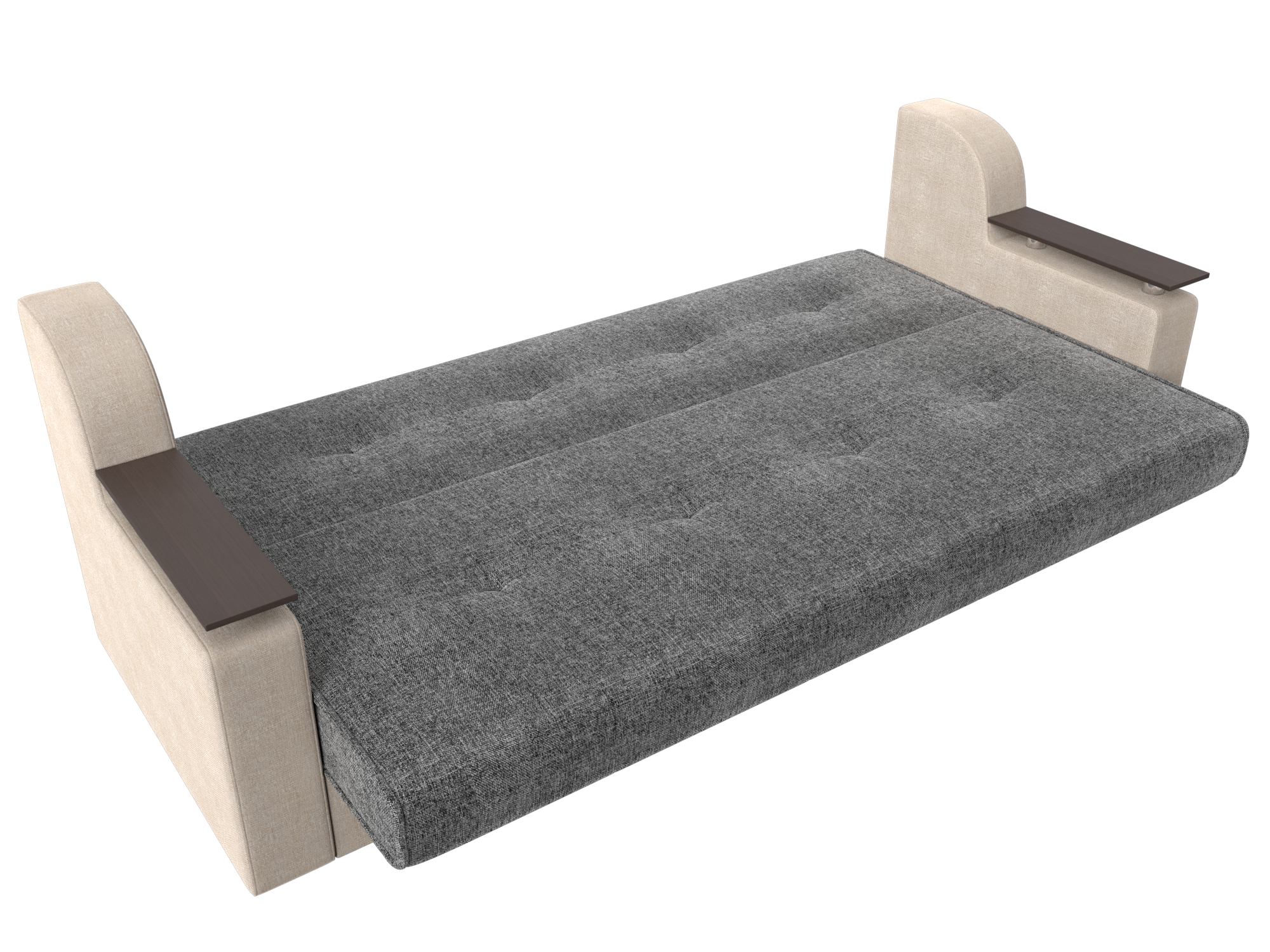 Сенатор – мягкий прямой диван с эргономичной спинкой и мини-столиками по бокам. Он устойчиво стоит на 4 пластиковых ножках, идеально гармонирующих с общим дизайном. Спинка прямая, без съемных подушек, подлокотники деревянные, выполняют роль столиков. Классический механизм «книжка» позволяет быстро трансформировать его в удобную двуспальную кровать.