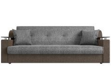 Сенатор – мягкий прямой диван с эргономичной спинкой и мини-столиками по бокам. Он устойчиво стоит на 4 пластиковых ножках, идеально гармонирующих с общим дизайном. Спинка прямая, без съемных подушек, подлокотники деревянные, выполняют роль столиков. Классический механизм «книжка» позволяет быстро трансформировать его в удобную двуспальную кровать.