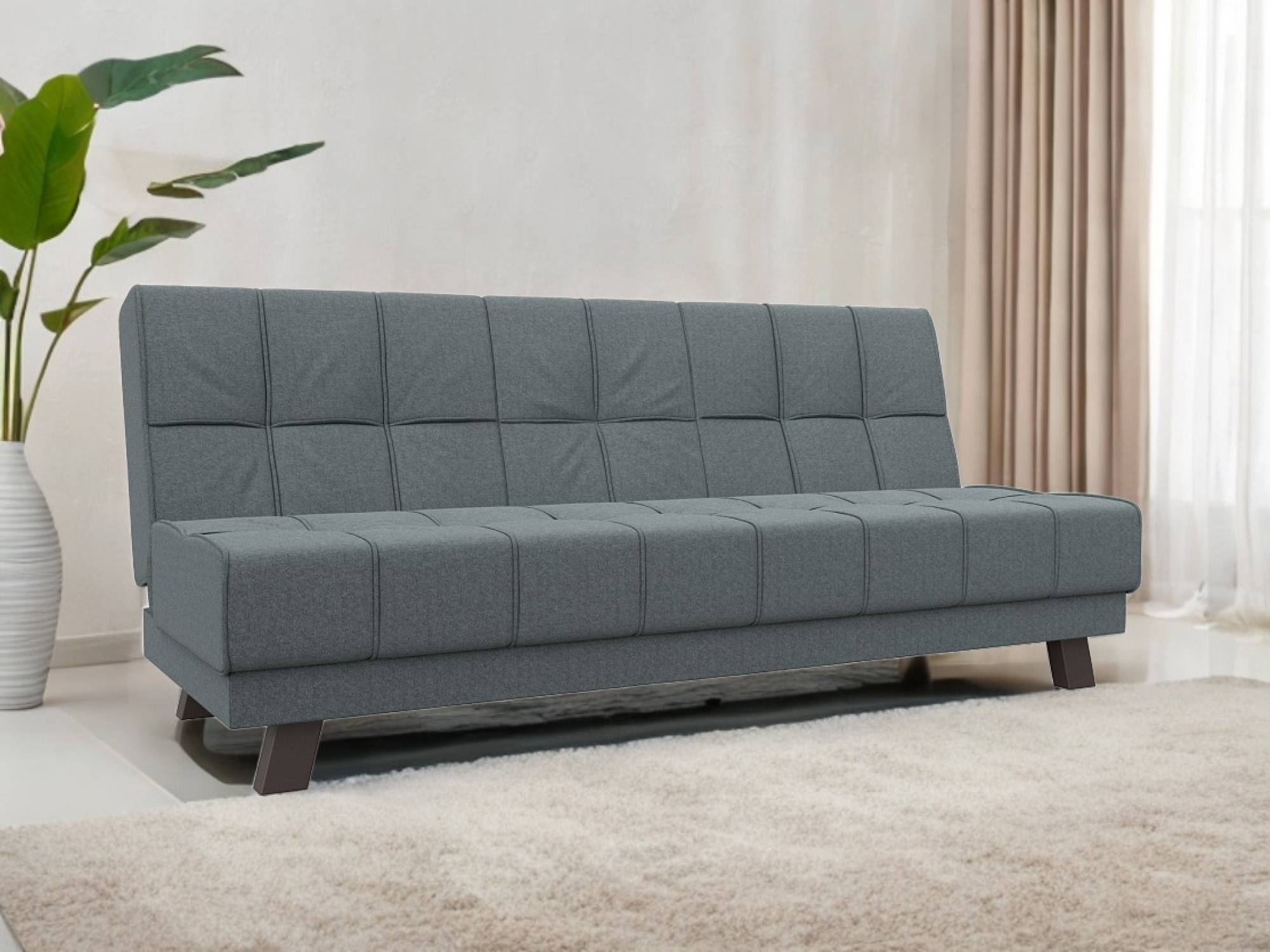 При компактных габаритах: 188x85x92 см подойдет для комнат любых размеров, легко раскладывается, обеспечивая спальное место 118х188 см.