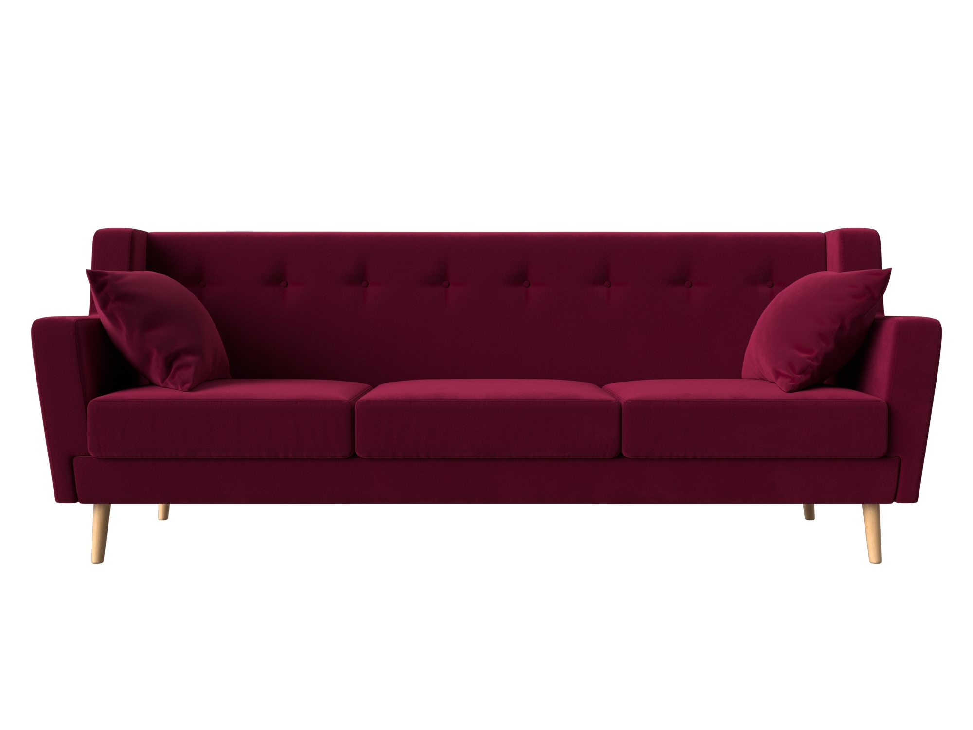 Прямой диван Брайтон 3, микровельвет (Бордовый) Код I0000360669