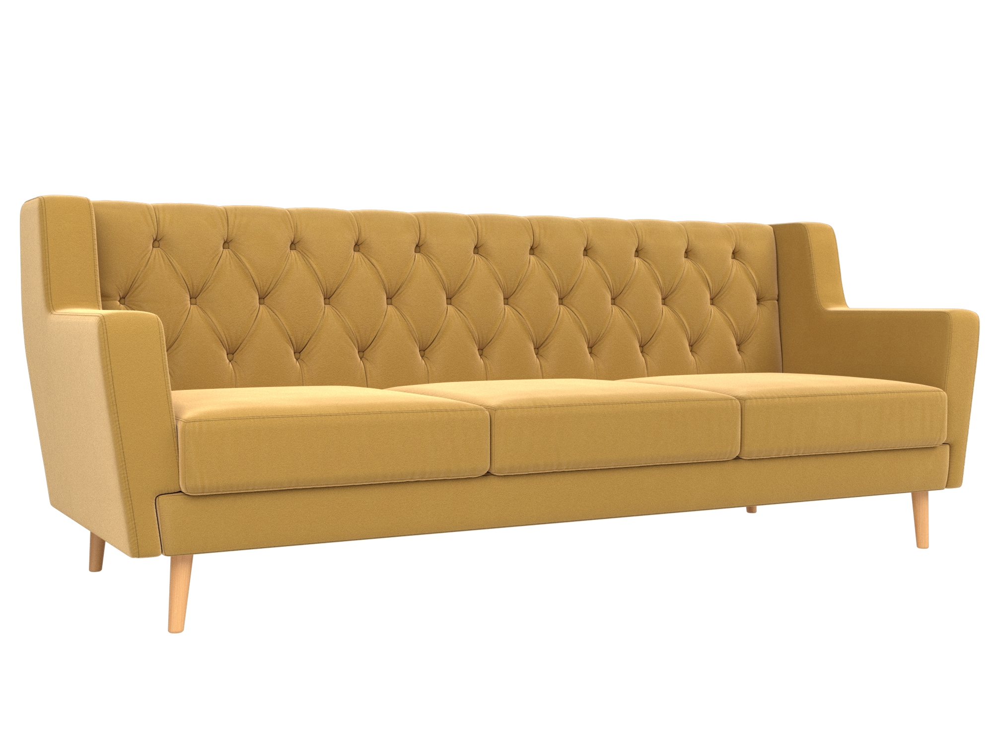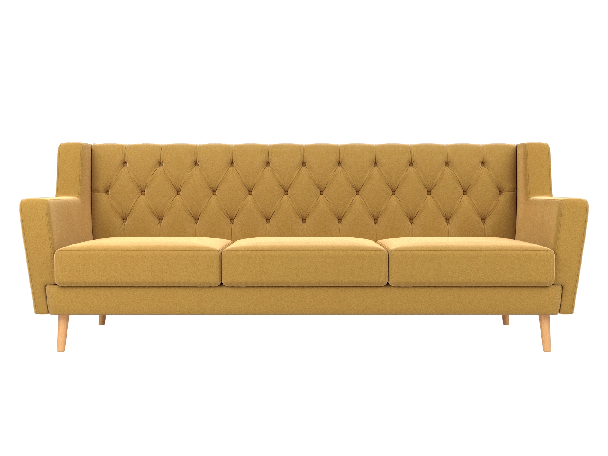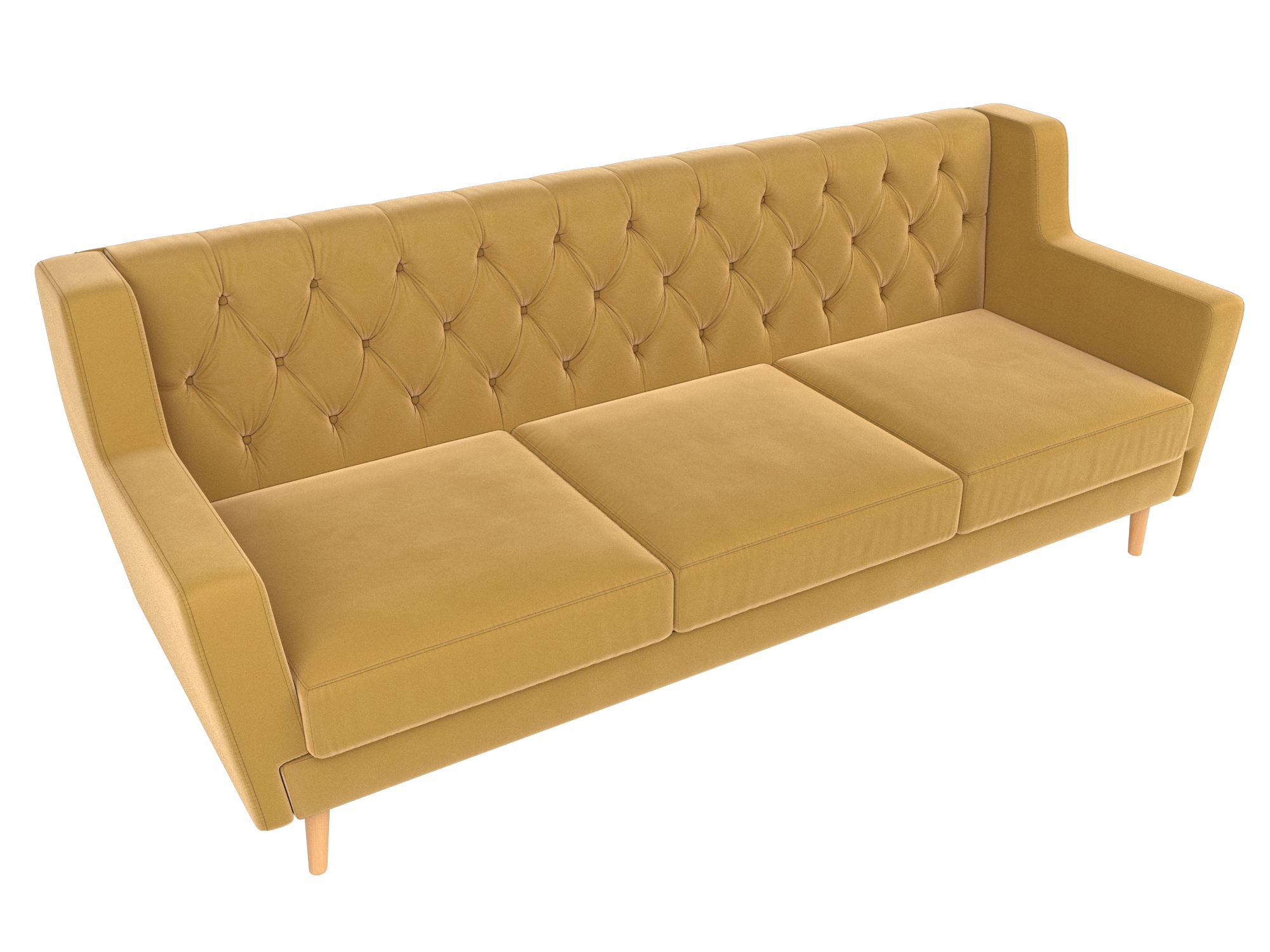 Прямой диван Брайтон 3 Люкс, микровельвет (Желтый) Код I0000360730
