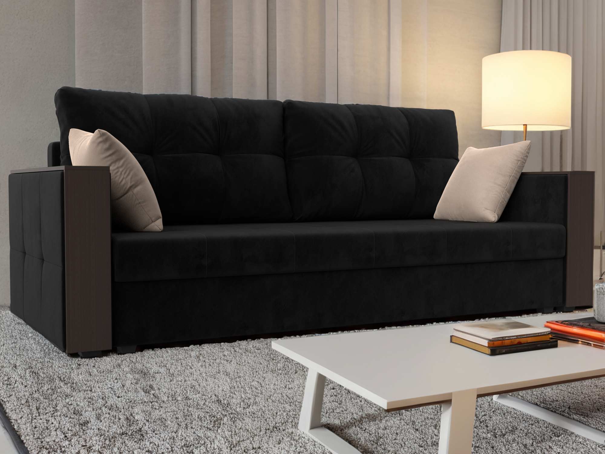 Отзывы о Столплит Прямой диван Валенсия Лайт, велюр Черный