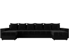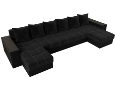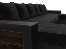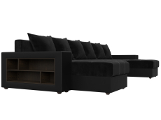 П-образный диван Дубай полки слева, велюр / экокожа (Черный) Код I0000361334