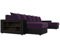 Отзывы о Столплит П-образный диван Дубай полки слева, велюр / экокожа Фиолетовый/Черный