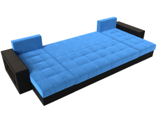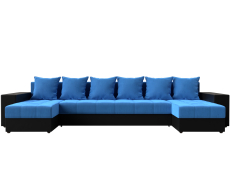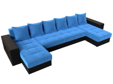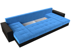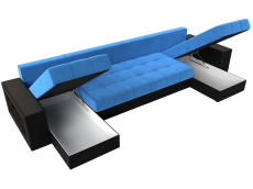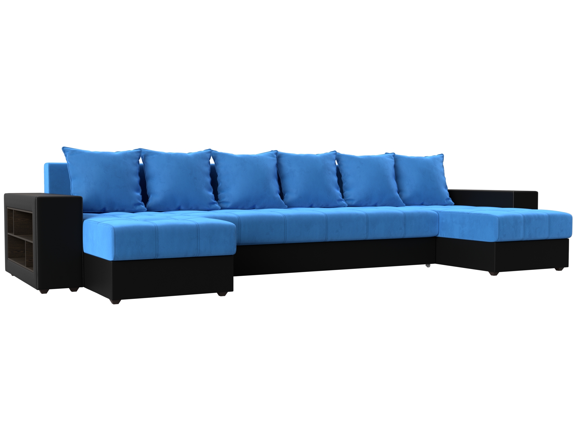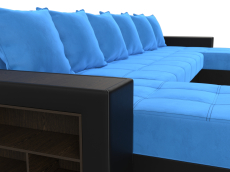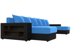 П-образный диван Дубай полки слева, велюр / экокожа (Голубой/Черный) Код I0000361323