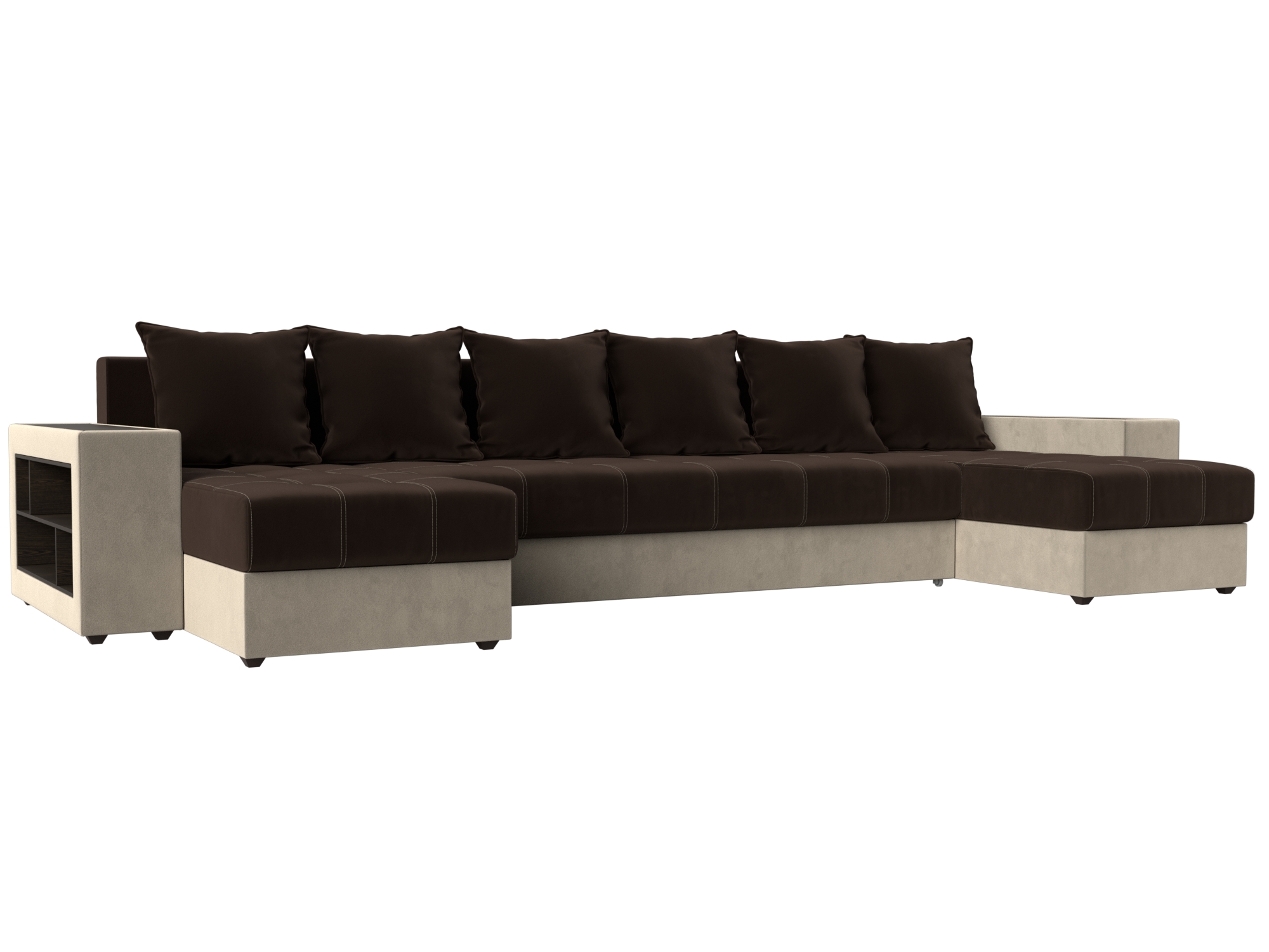 Отзывы о Столплит П-образный диван Дубай полки слева, микровельвет Коричневый / бежевый