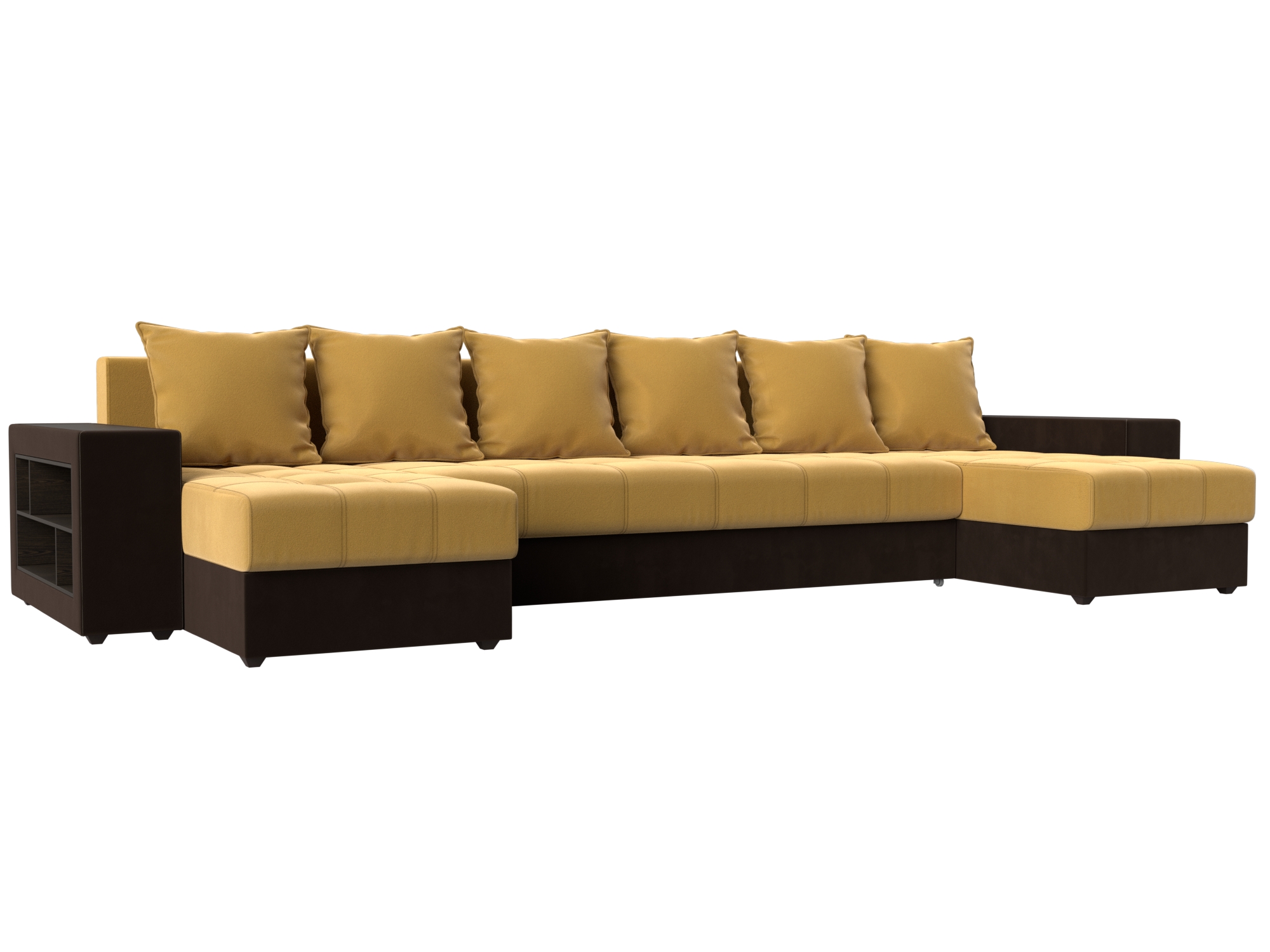 Отзывы о Столплит П-образный диван Дубай полки слева, микровельвет Желтый/Коричневый