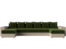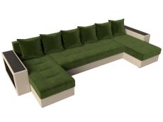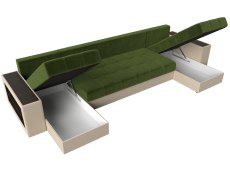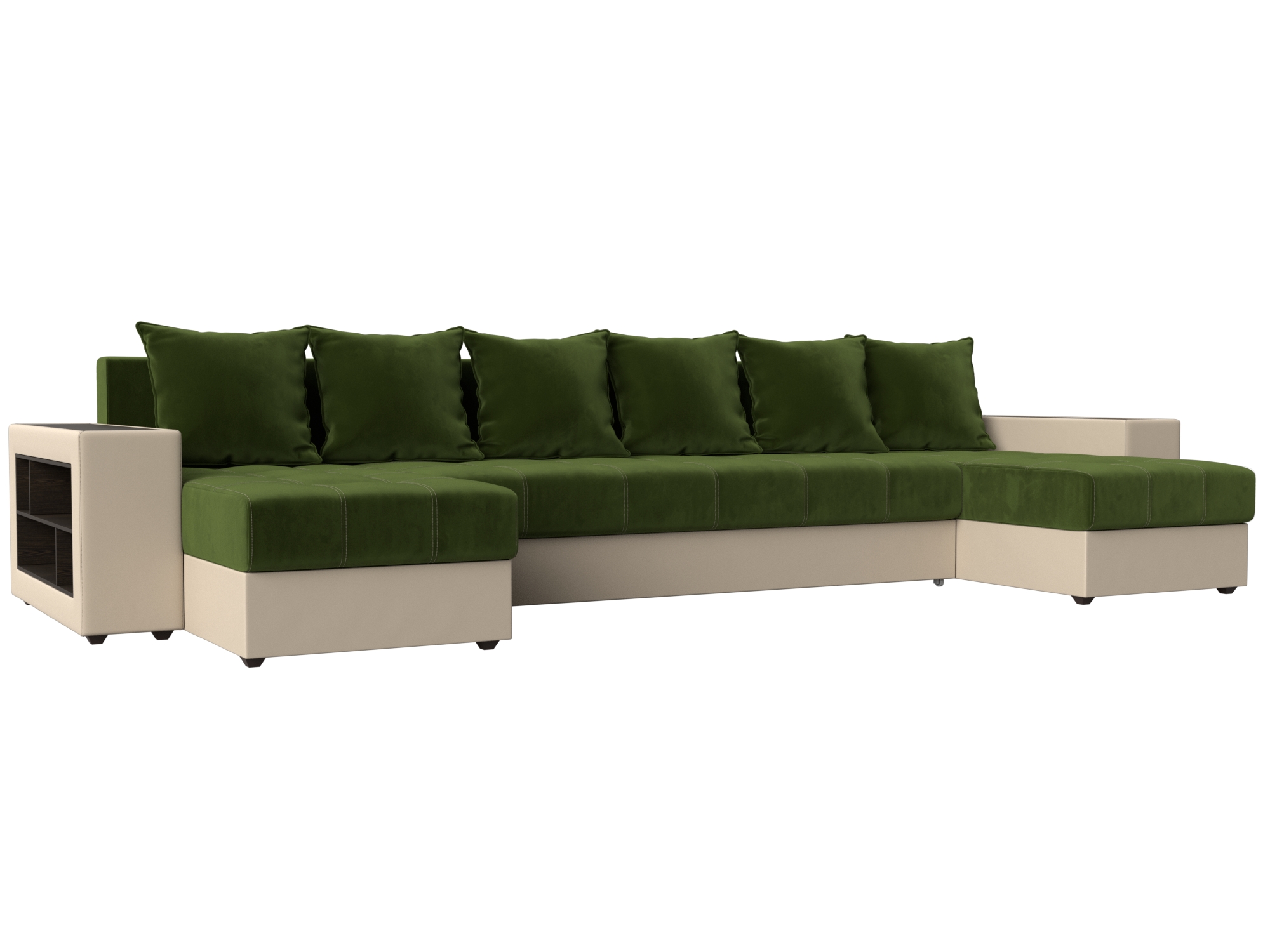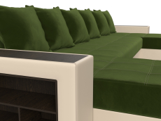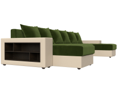 Отзывы о Столплит П-образный диван Дубай полки слева, микровельвет / экокожа Зеленый/Бежевый