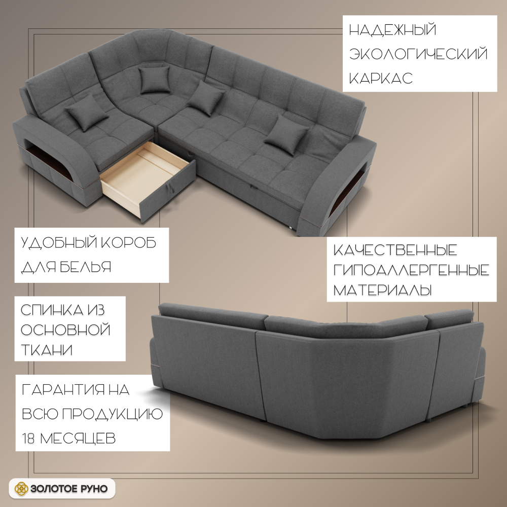 Отзывы о Столплит Угловой диван Майами-3 ППУ, велюр Серый