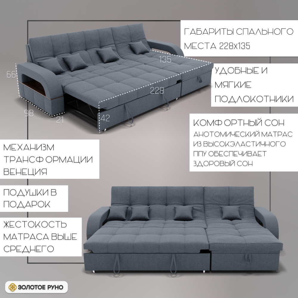 Благородная фактура обивки и современный дизайн отлично дополнят ваш интерьер.