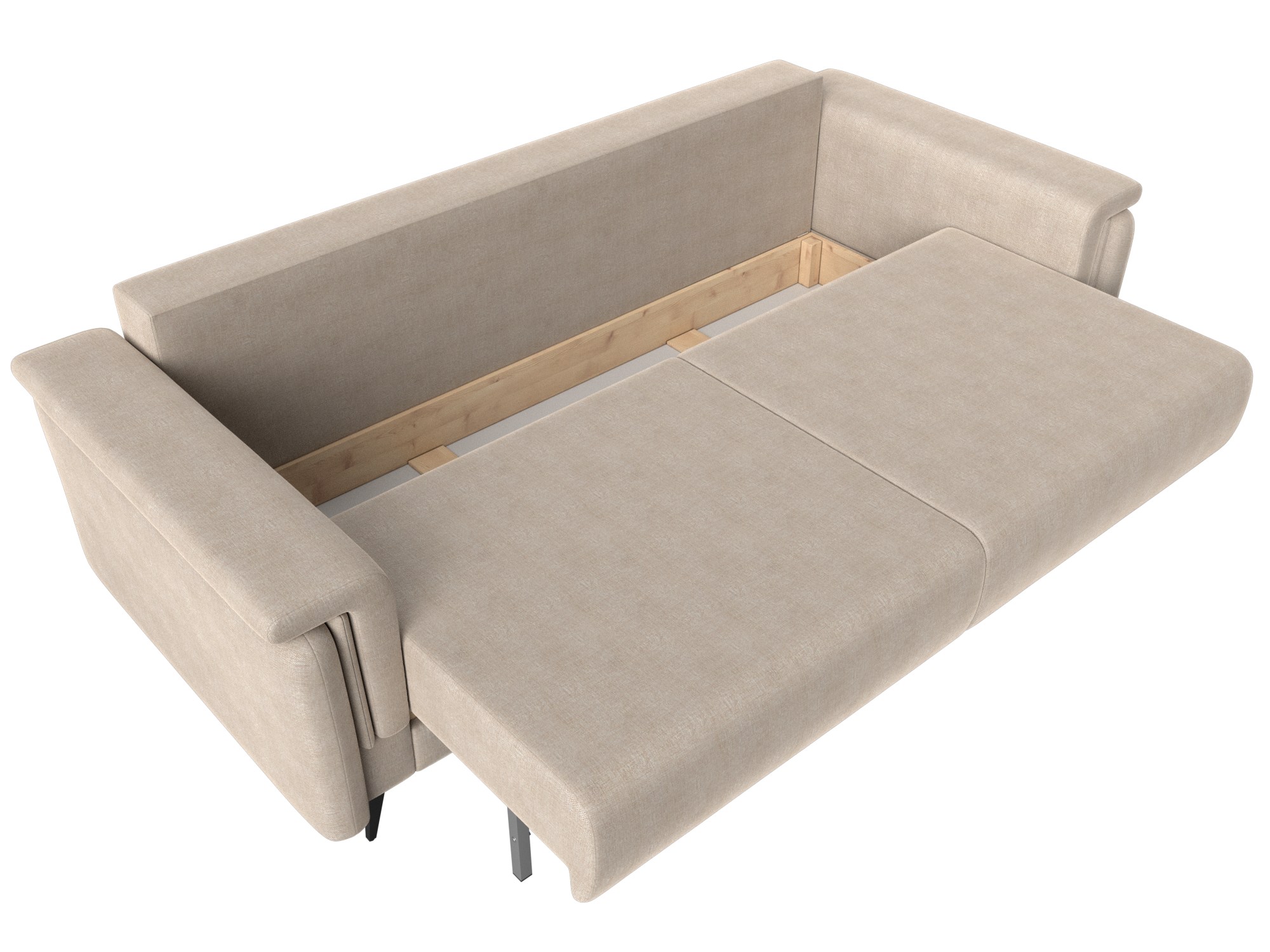 При наиболее приемлемых, комфортных габаритах: 230x101x96 см подойдет для комнат любых размеров, легко раскладывается, обеспечивая широкое спальное место 142х191 см.