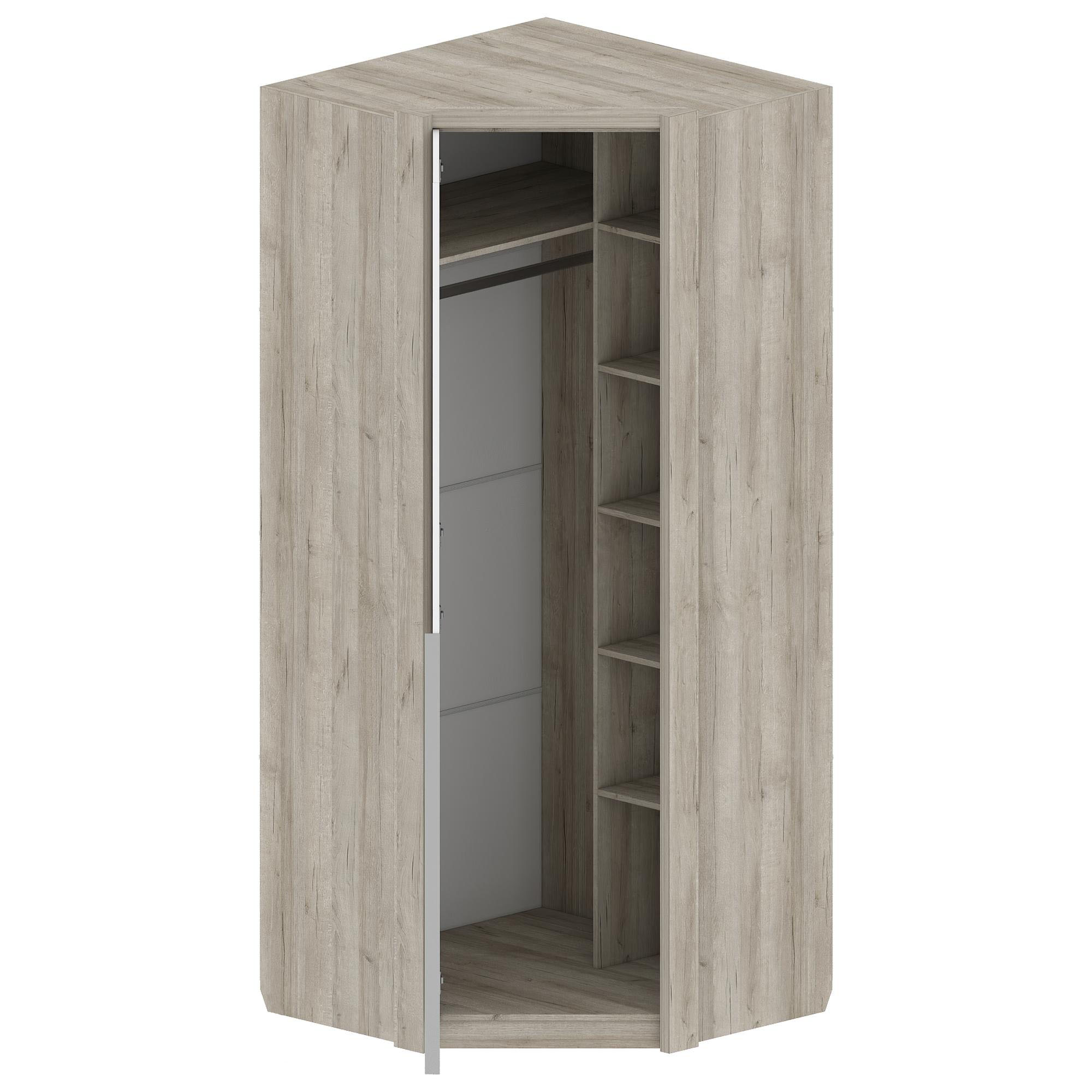 Угловой шкаф ШК-3219 Анима из комплекта модульной спальни Анима не оснащён зеркалом. Дизайн в стиле Лофт общий для всей спальни и выделяется природными текстурами дерева и камня.