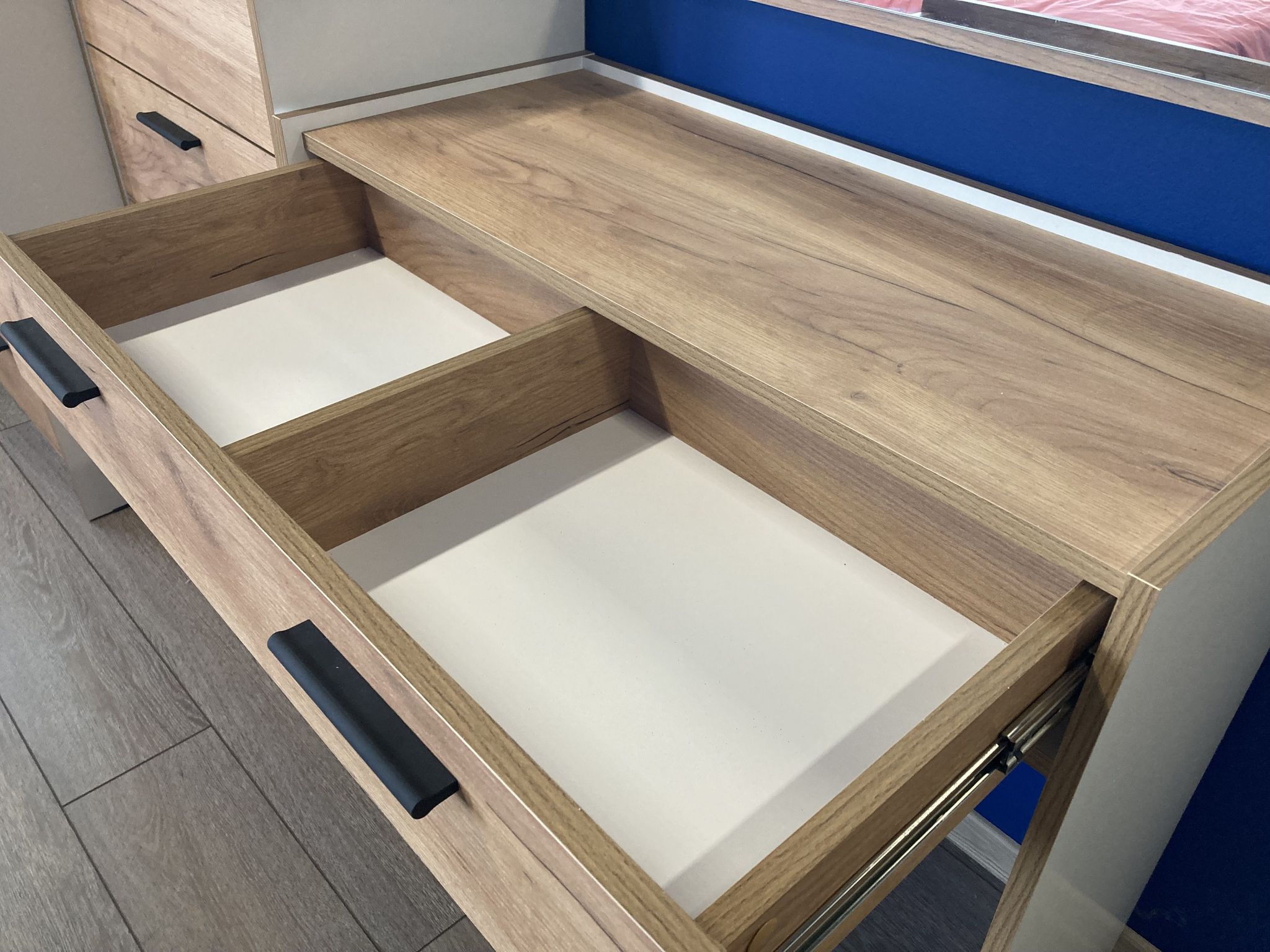 Стол имеет широкую столешницу для удобства пользования. Под столешницей расположен широкий выдвижной ящик для сопутствующих предметов.