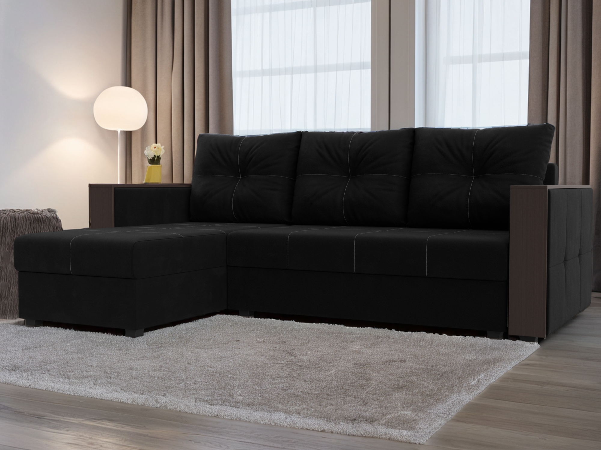 Отзывы о Столплит Угловой диван Валенсия Лайт левый угол, микровельвет Черный